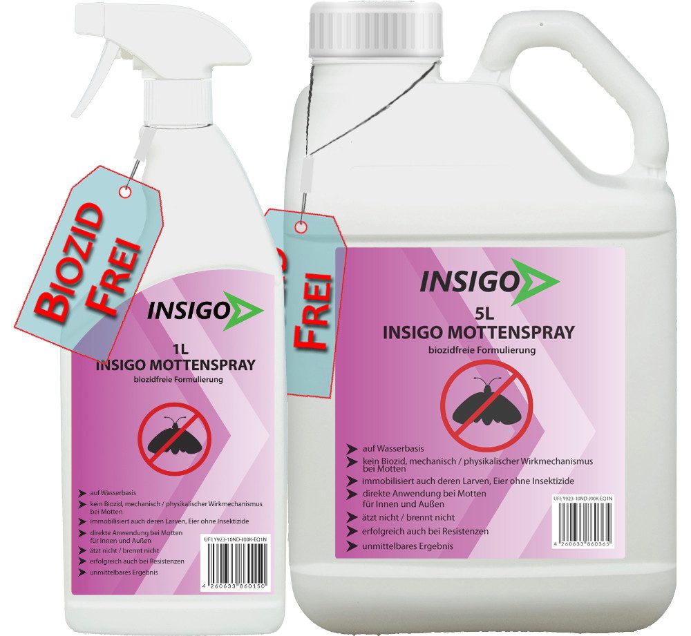 Eigenschaften | anwendungsfertig hochwirksam gegen Motten bekämpft auch Motten Eier Wasserbasis geruchsarm hinterlässt keine Flecken biozidfreie Formel |