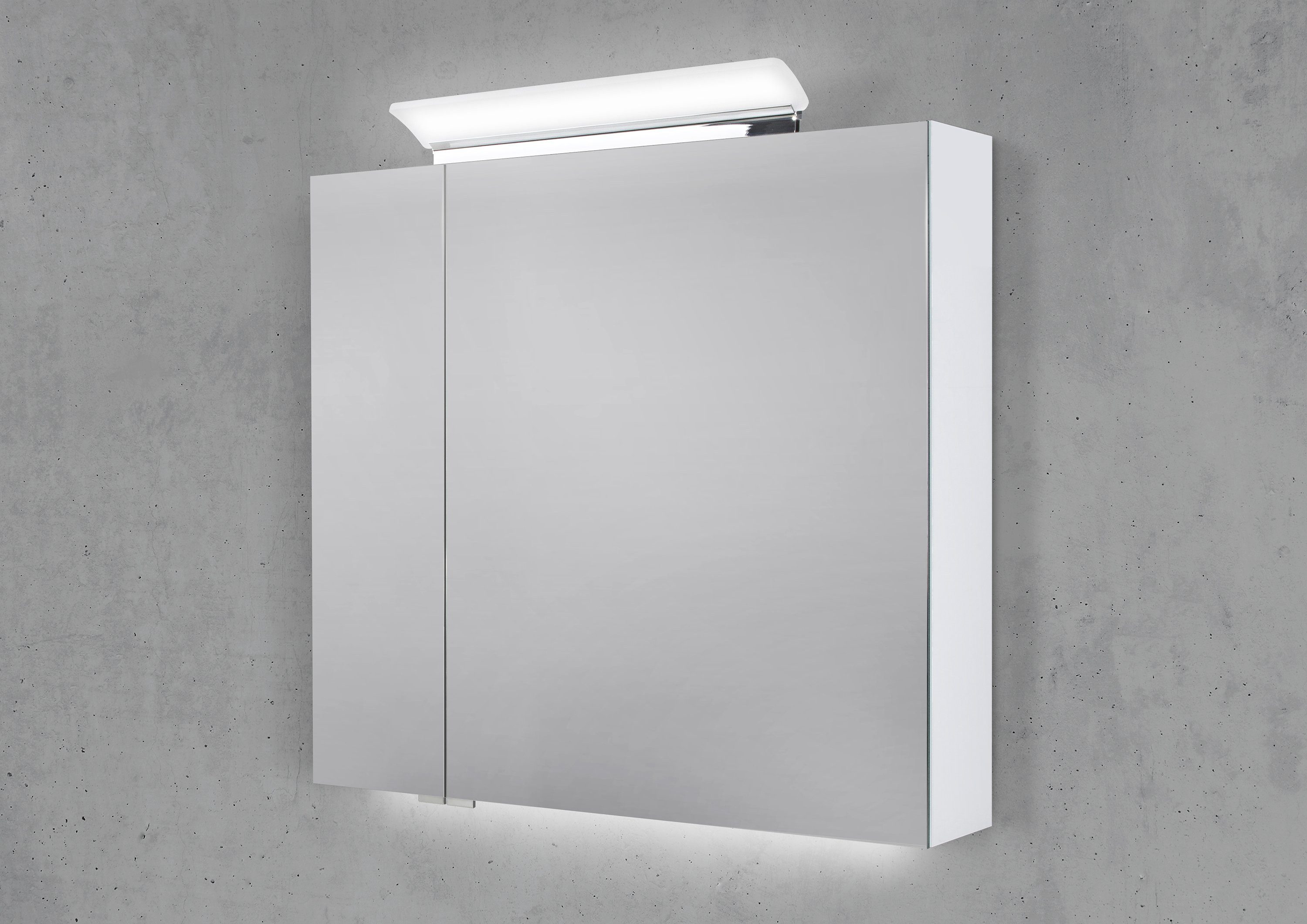 Spiegelschrank 80 cm LED Acryl Aufsatzleuchte doppelseitig verspiegelt