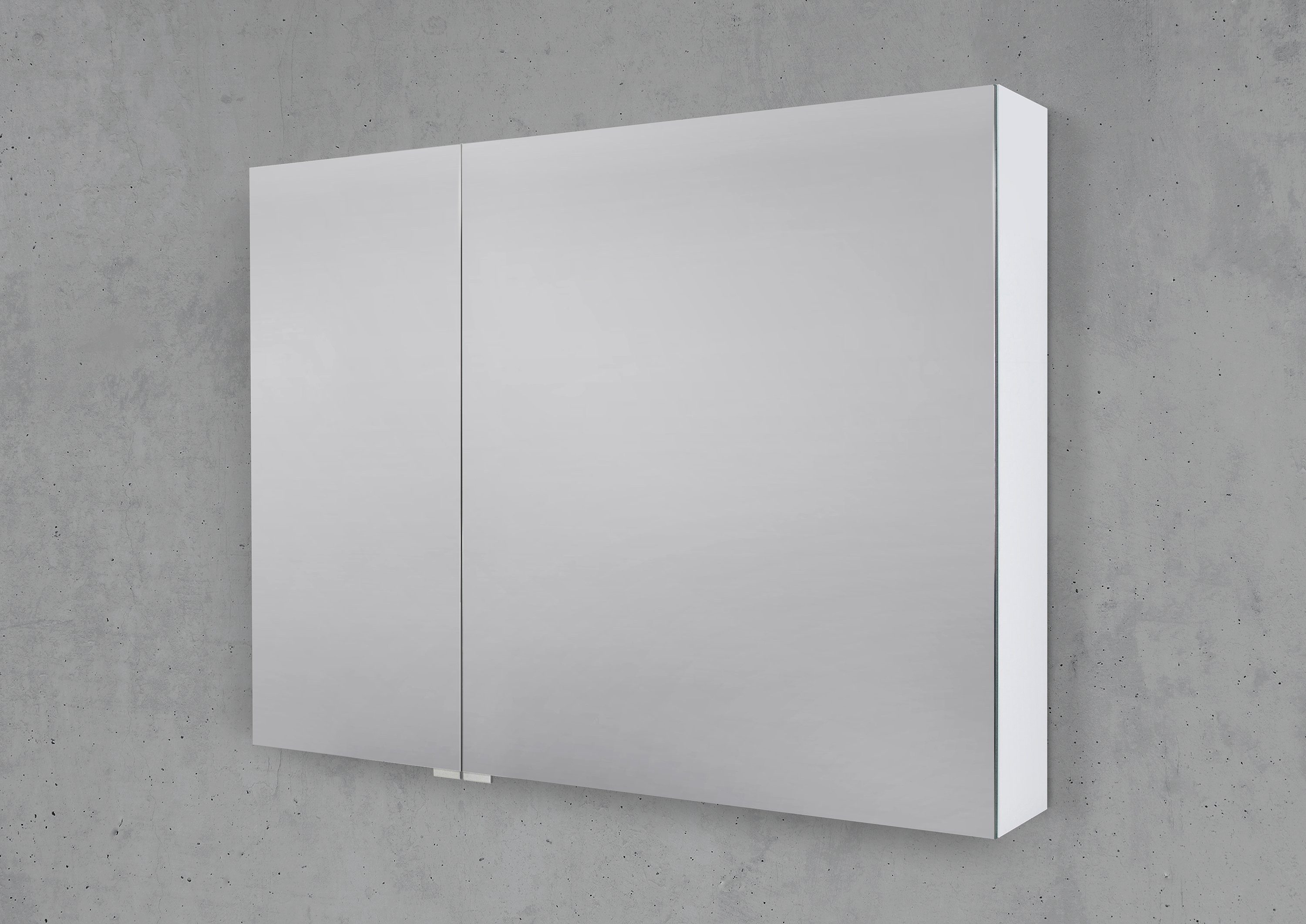 Design Spiegelschrank mit beidseitig verspiegelten Türen inkl. Türdämpfungen.