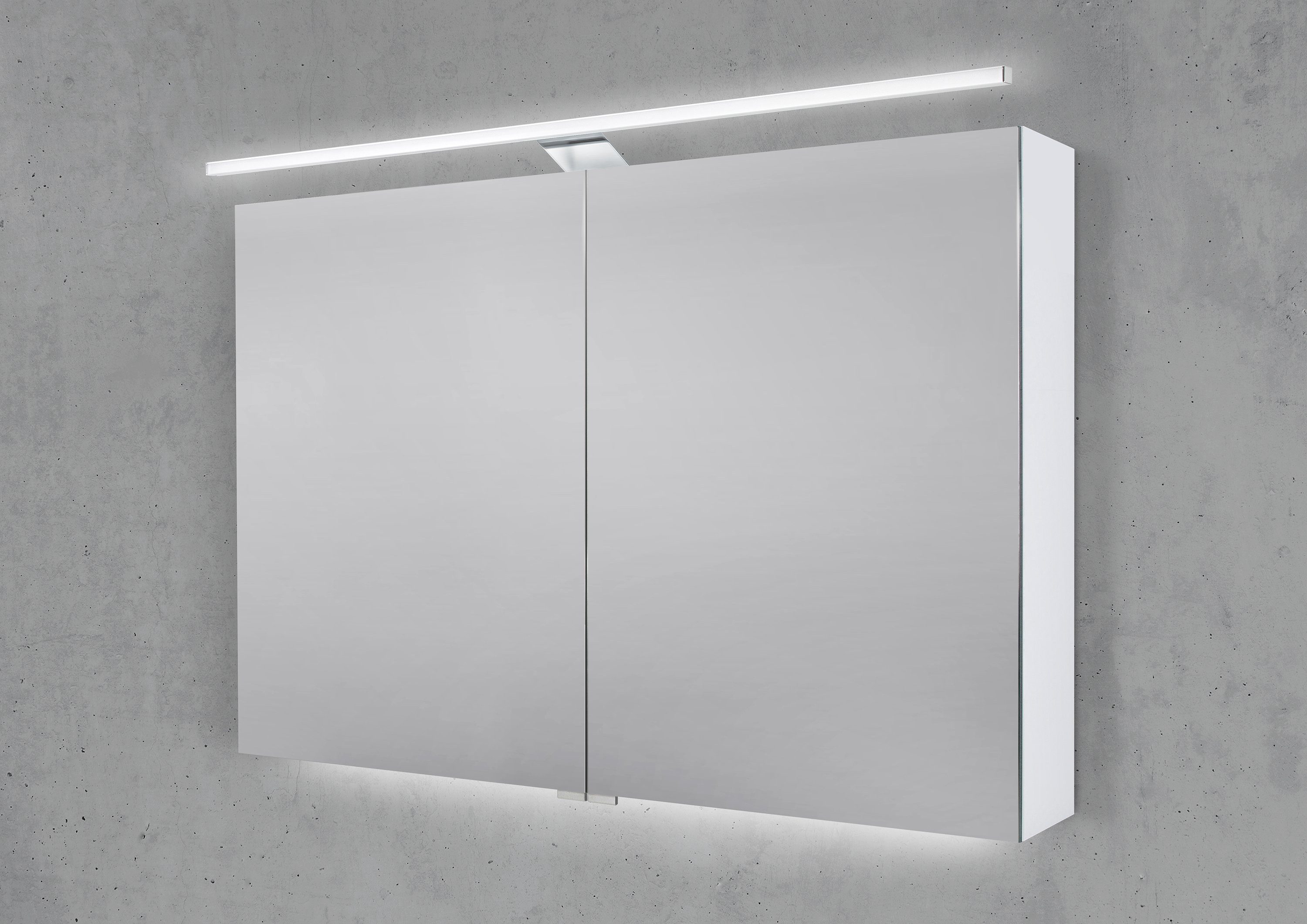 Elegantes Design und hochwertige Verarbeitung Made in Germany - Dafür steht dieser Spiegelschrank der Marke Intarbad. Neben der großen Auswahl an Dekoren, können Sie diesen Spiegelschrank ganz auf Ihre Bedürfnisse abstimmen. So finden Sie im Inneren des Spiegelschranks vier komfortabel höhenverstellbare Glasfachböden, ein Dosen-/ Schalterelement, sowie eine Reihe nützlicher Ausstattungsmerkmale, wie einen Vergrößerungsspiegel oder eine Magnetleiste. Der Spiegelschrank verfügt über beidseitig verspiegelte Türen, eine LED-Aufbauleuchte sowie eine LED-Unterbauleuchte, die Ihr Bad in einem völlig neuen Glanz erstrahlen lassen. Dieser Spiegelschrank wird Sie mit seinem zeitlos eleganten Design und einer langen Lebensdauer überzeugen und Ihren Alltag bereichern.