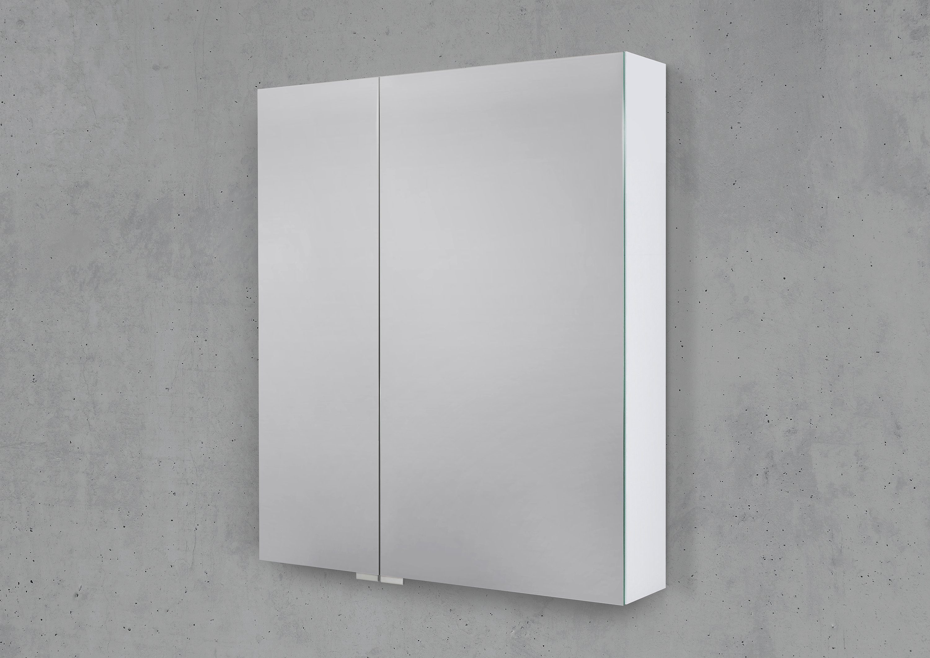Design Spiegelschrank mit beidseitig verspiegelten Türen inkl. Türdämpfungen.