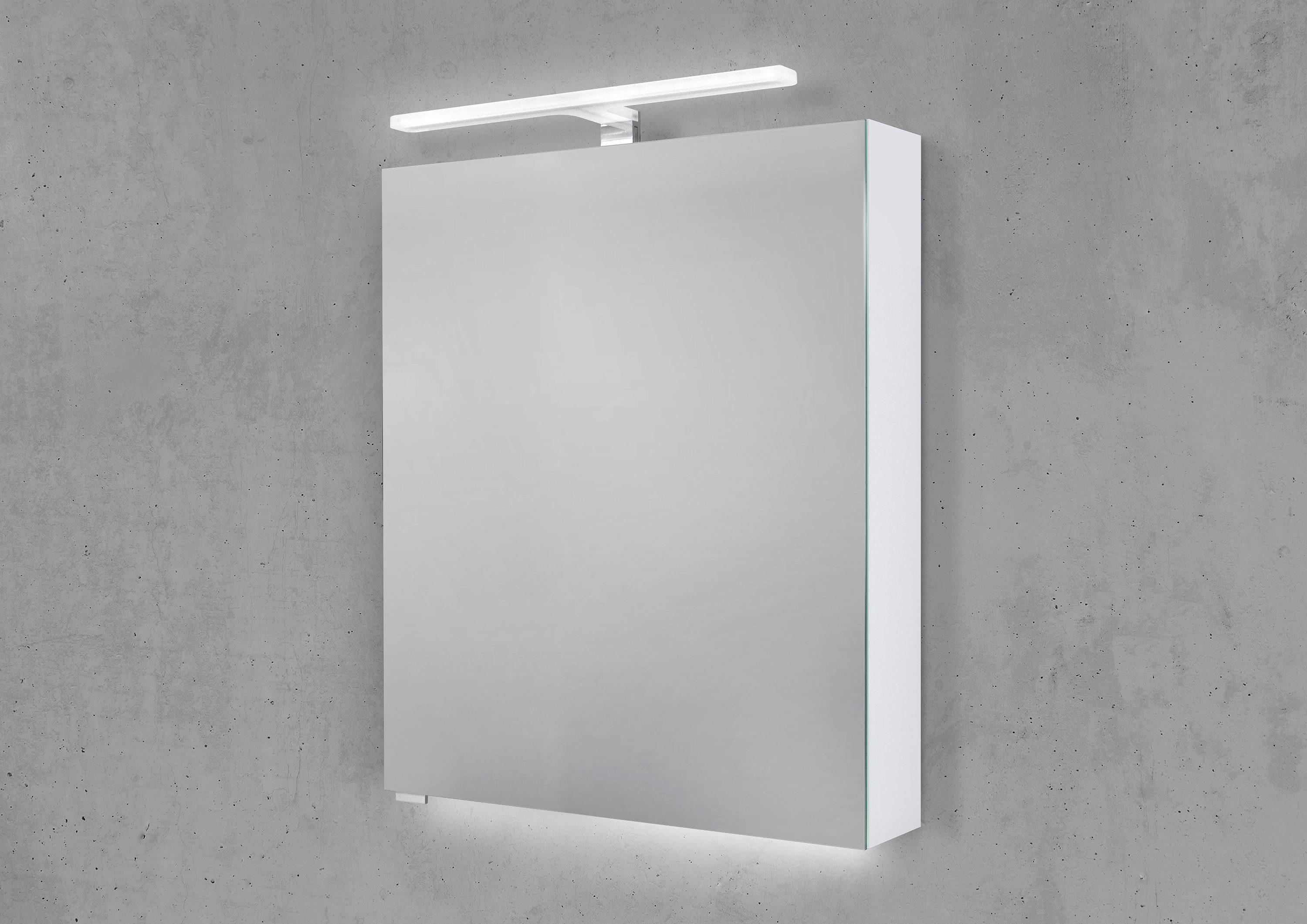 Elegantes Design und hochwertige Verarbeitung Made in Germany - Dafür steht dieser Spiegelschrank der Marke Intarbad. Neben der großen Auswahl an Dekoren, können Sie diesen Spiegelschrank ganz auf Ihre Bedürfnisse abstimmen. So finden Sie im Inneren des Spiegelschranks zwei komfortabel höhenverstellbare Glasfachböden, ein Dosen-/ Schalterelement, sowie eine Reihe nützlicher Ausstattungsmerkmale, wie einen Vergrößerungsspiegel oder eine Magnetleiste. Der Spiegelschrank verfügt über beidseitig verspiegelte Türen, eine LED-Aufbauleuchte sowie eine LED-Unterbauleuchte, die Ihr Bad in einem völlig neuen Glanz erstrahlen lassen. Dieser Spiegelschrank wird Sie mit seinem zeitlos eleganten Design und einer langen Lebensdauer überzeugen und Ihren Alltag bereichern.