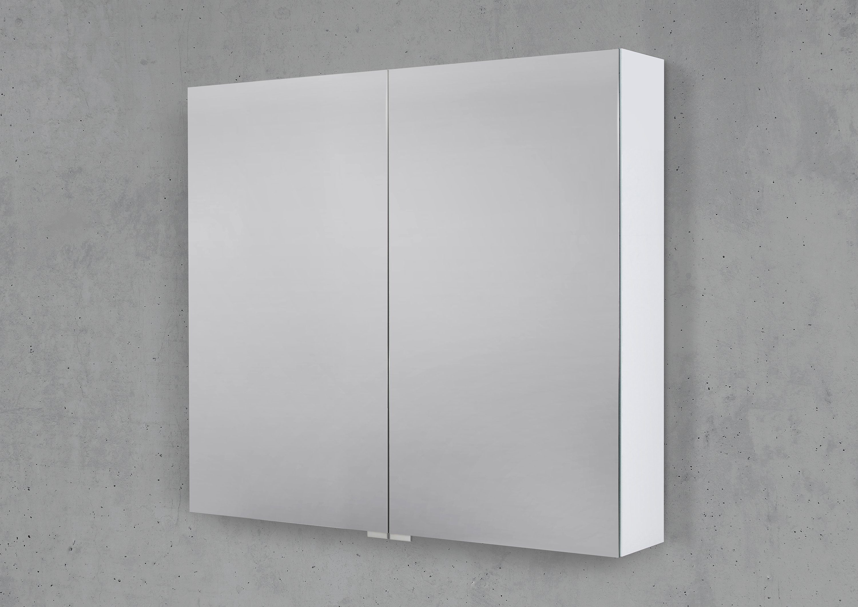 Design Spiegelschrank mit beidseitig verspiegelten Türen inkl. Türdämpfungen.