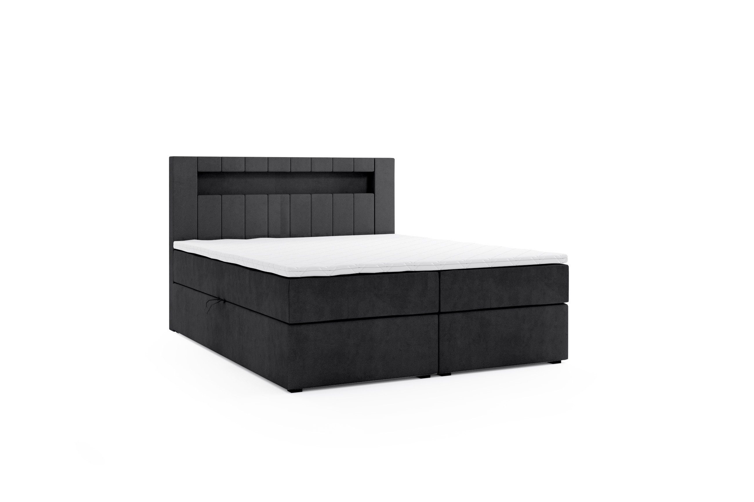 Boxspringbett HANOI mit Bettkasten Visco Topper LED 180 x 200 cm Webstoff SCHWARZ Bett Bettkasten Topper