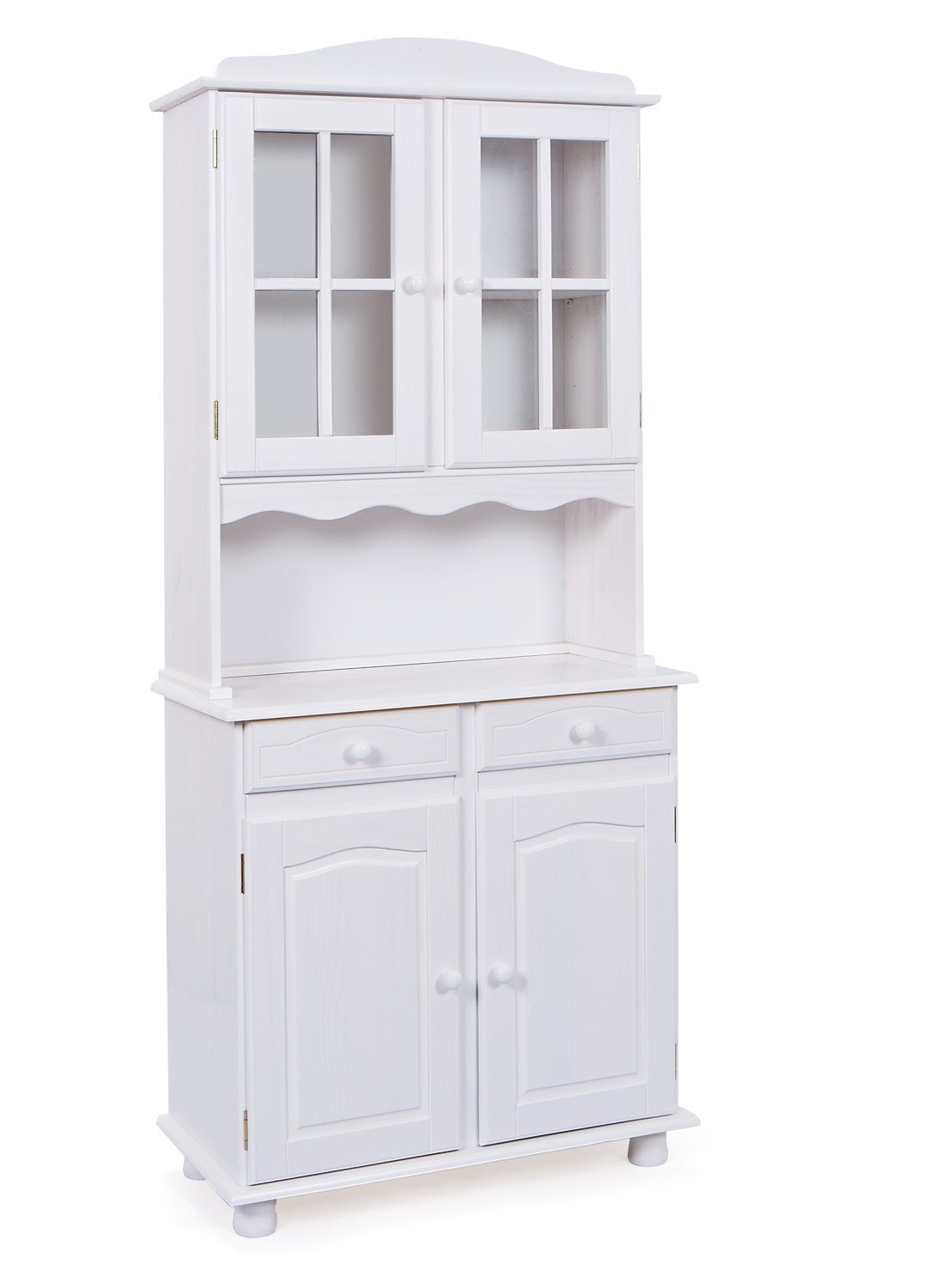 Der Landhaus Vitrinenschrank "Valencia" verbindet eleganten Charme mit praktischer Funktionalität und bietet eine ideale Ergänzung für jede Küche, die mehr Stauraum benötigt. Sein klassisch-schlichtes Design fügt sich nahtlos in diverse Einrichtungskonzepte ein, während die leicht weiß lackierte Weihrauchkiefer-Massivholzkonstruktion eine warme und gemütliche Atmosphäre ausstrahlt.