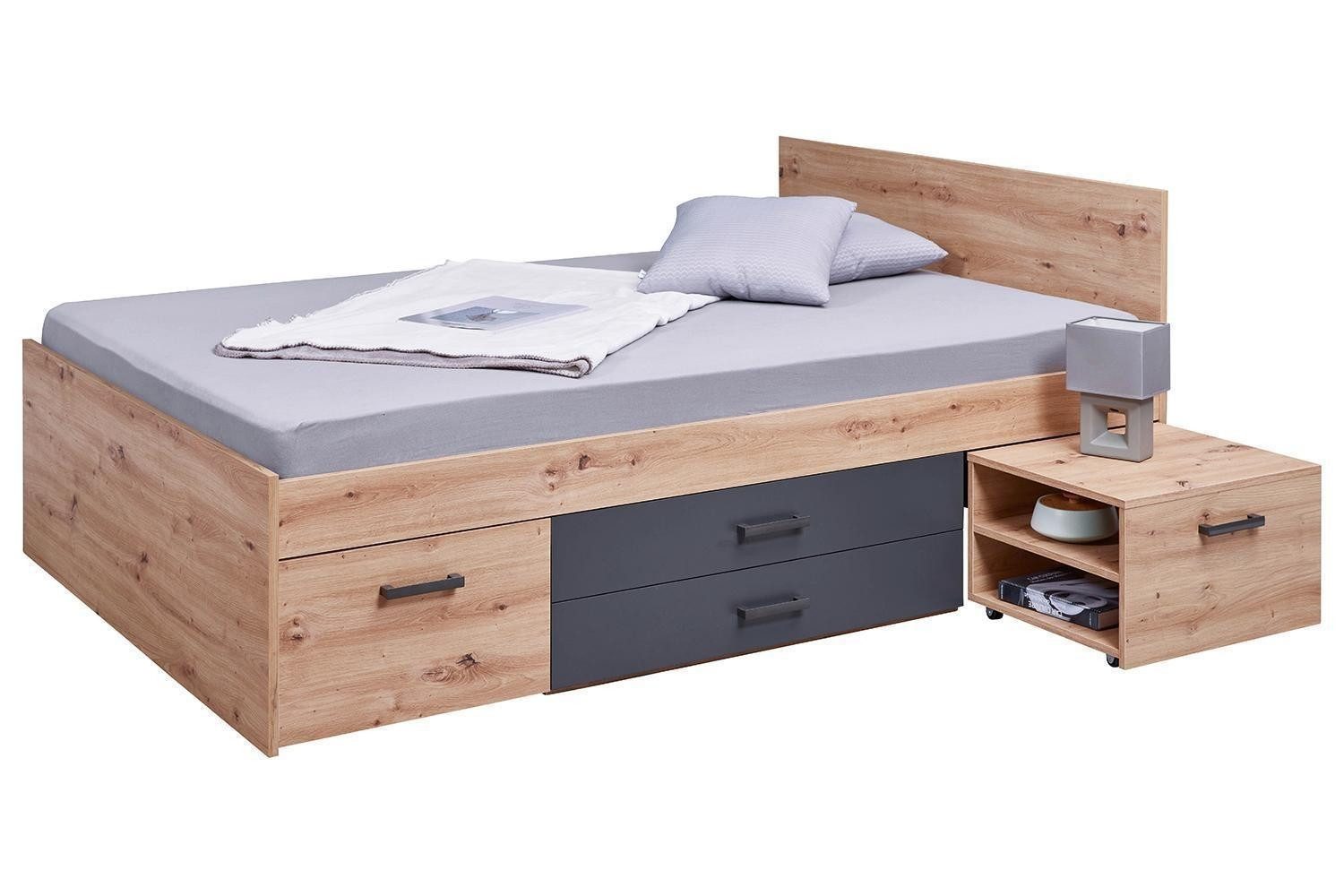 Lieferumfang | 1 Bettgestell mit Paneelkopfteil, 6 Schubladen und 2 ausziehbaren Nachttischen. Ohne Matratze und Lattenrost |