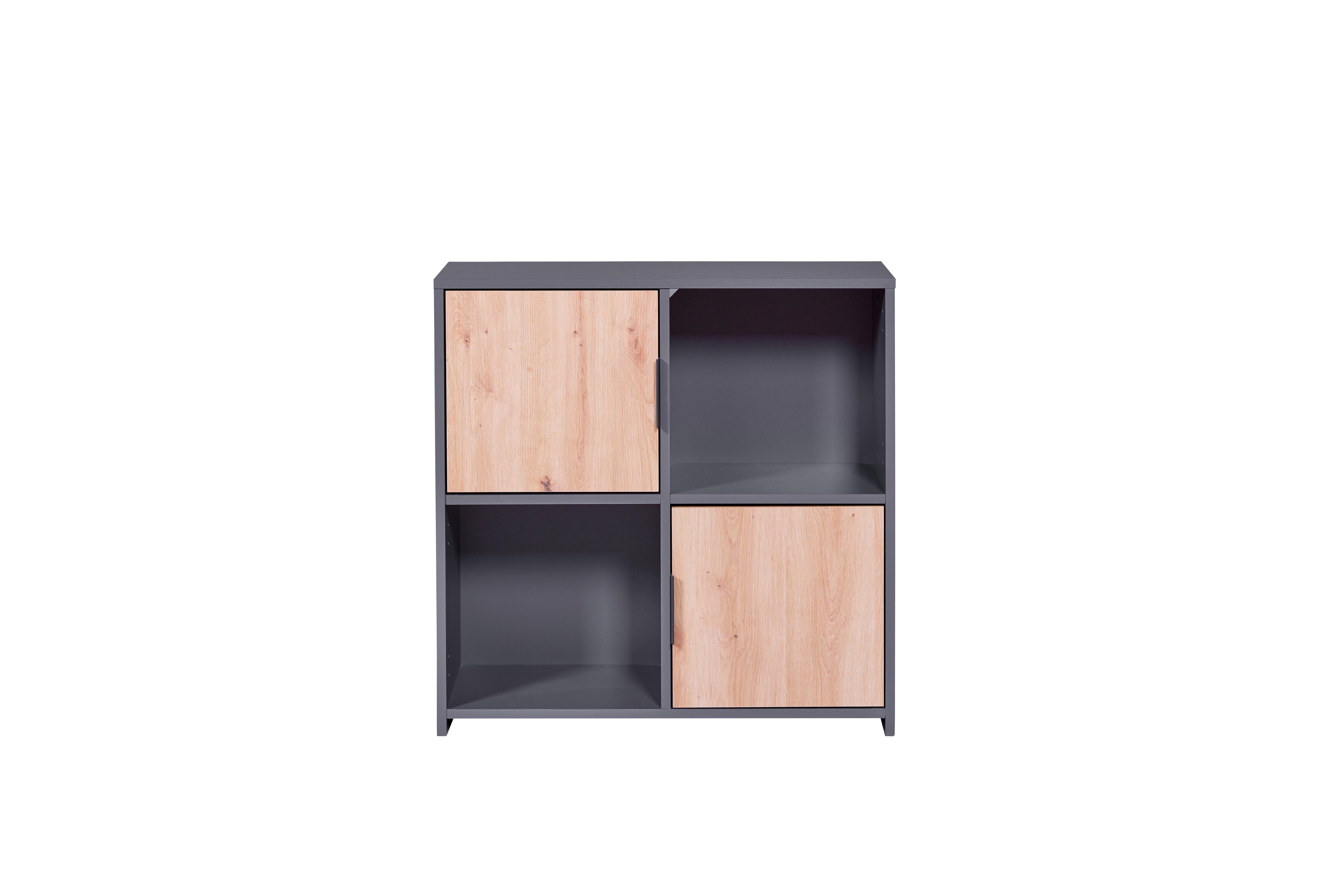 Die PEPETO Kommode verbindet Funktionalität mit modernem Stil. Ausgestattet mit 2 Türen und 2 offenen Regalfächern, eignet sie sich hervorragend für Büros, Eingangsbereiche oder Wohnzimmer und passt sich jedem Einrichtungsstil an.