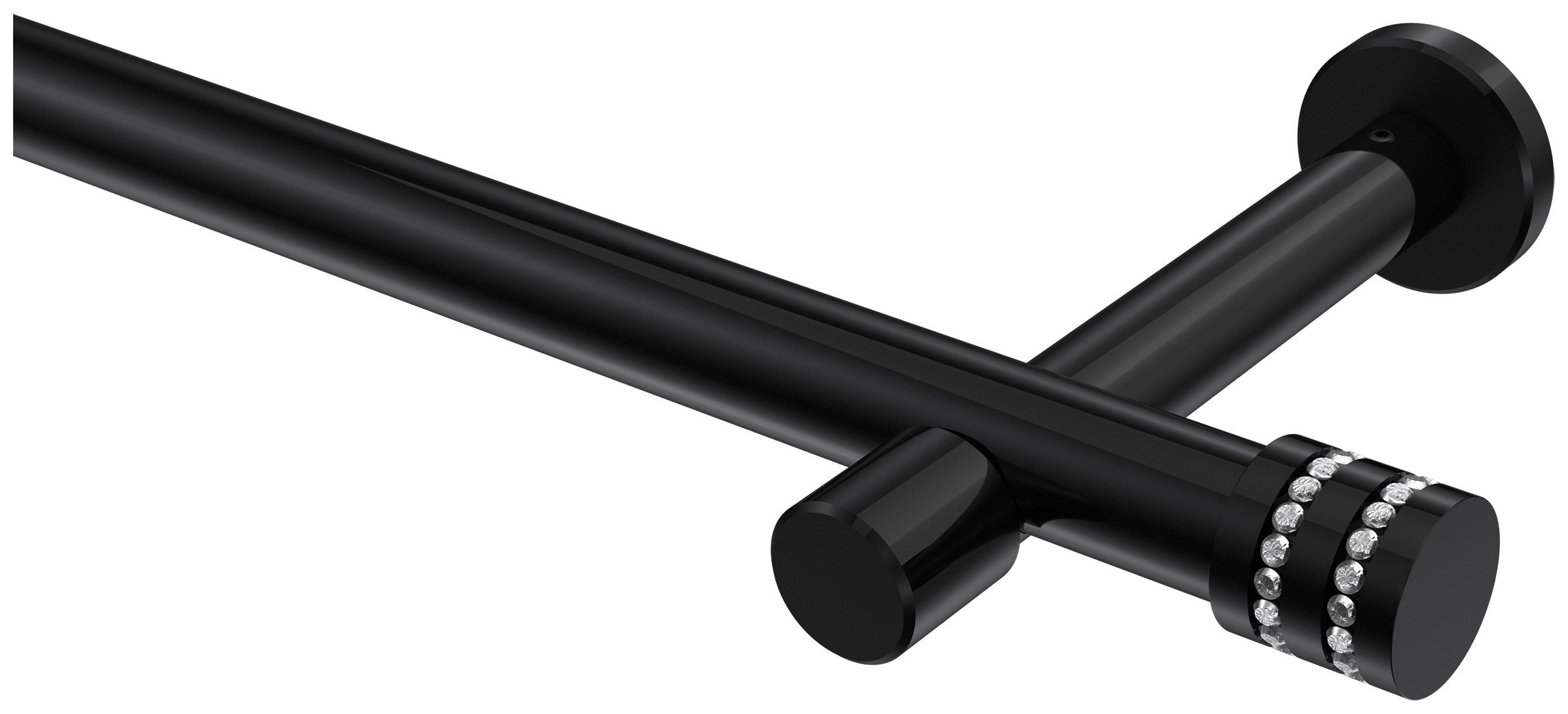 Lieferumfang | Endstücke "Glitzerkappe" Schwarz Rohr 100 cm Schwarz Träger 1-läufig Schwarz inkl. Befestigungsmaterial |