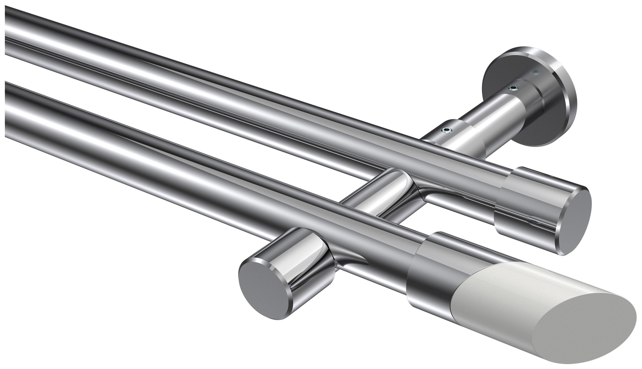 Lieferumfang | Endstücke "Kappe" Chrom Endstücke "Schräge / Bicolor" Chrom/Weiß Rohre 100 cm Chrom Träger 2-läufig Chrom inkl. Befestigungsmaterial |