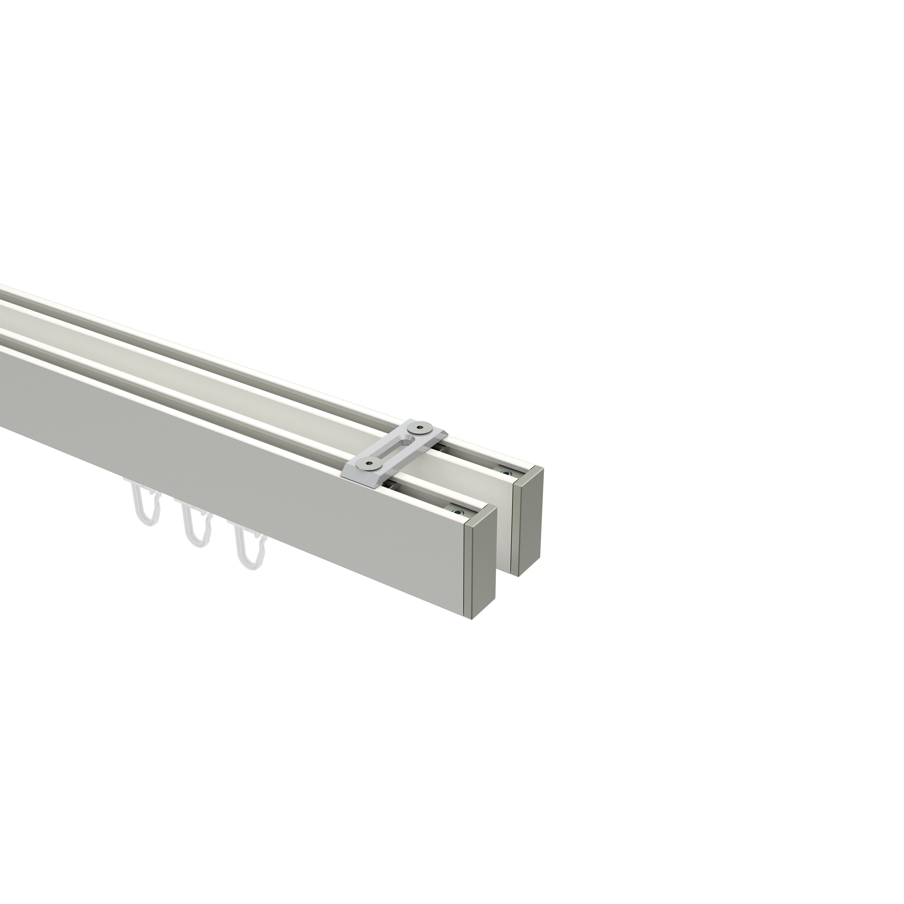 Diese kantigen Gardinenstangen mit Innenlauf in Weiß / Edelstahl-Optik liegen im Trend schlicht wirkender Gardinendekoration. Die Innenlaufstangen des Modells Smartline (Universal) Paxo in Doppellauf-Ausführung bestehen aus Aluminium und Metall und werden für die direkte Deckenmontage verwendet. Geliefert wird diese Innenlaufstange als Set, d. h. montagefertig inkl. Halter, Endstücke und Befestigungsmaterial. Die Gardinen bzw. Vorhänge werden mit dessen Kräusel- oder Gardinenband an den Faltengleitern befestigt. Material: Aluminium (Innenlaufprofil) / Metall (Zubehör) Farbe: Weiß / Edelstahl-Optik (Profil Weiß / Zubehör Edelstahl-Optik) Ausführung: doppelläufig Profil (B x H): 14 x 35 mm Träger (Halterungen): Deckenträger mit ca. 0,3 cm Deckenabstand (Trägerabstand) Befestigungsmöglichkeit(en): Deckenbefestigung Lieferumfang: 2 Stk. Innenlaufprofile (bis 200 cm Длина = ungeteilt, größer als 200 cm bis 280 cm = geteilt in 2 Teilstücke pro Lauf, 300 cm = geteilt in 3 Teilstücke pro Lauf, größer als 300 cm bis 400 cm = geteilt in 2 Teilstücke pro Lauf, größer als 400 cm bis 600 cm = geteilt in 3 Teilstücke pro Lauf), 2 Stk. Endstücke für dieses Modell (vordere Stange), 2 Stk. Endstücke (hintere Stange), 2 Stk. Träger (größer als 200 cm bis 280 cm = 3 Stk. Träger, 300 cm = 4 Stk. Träger, größer als 300 cm bis 400 cm = 3 Stk. Träger, größer als 400 cm bis 600 cm = 4 Stk. Träger), Faltengleiter mit Faltenlegehaken (1 Stk. Faltengleiter mit Faltenlegehaken pro 10 cm Stangenlänge je Lauf) u. Befestigungsmaterial. Zwischengrößen, Überlängen und Spezialanfertigungen auf Anfrage. Die oben angegebenen Größen beziehen sich auf die reine Stangenlänge zzgl. der Endstücke. Herstellerhinweis, Empfehlung und Farbhinweis: Abhängig von Verwendung kann es unter Umständen möglich sein, dass unabhängig vom Lieferumfang und Размер ein zusätzlicher Zwischenträger erforderlich sein kann. Die Farbwiedergabe der Abbildung bzw. des Bildmaterials kann eventuell von den Original Farben abweichen. Dieses könnte unter anderem von den Einstellungen Ihrer Grafikkarte und Ihres Monitors abhängig sein.