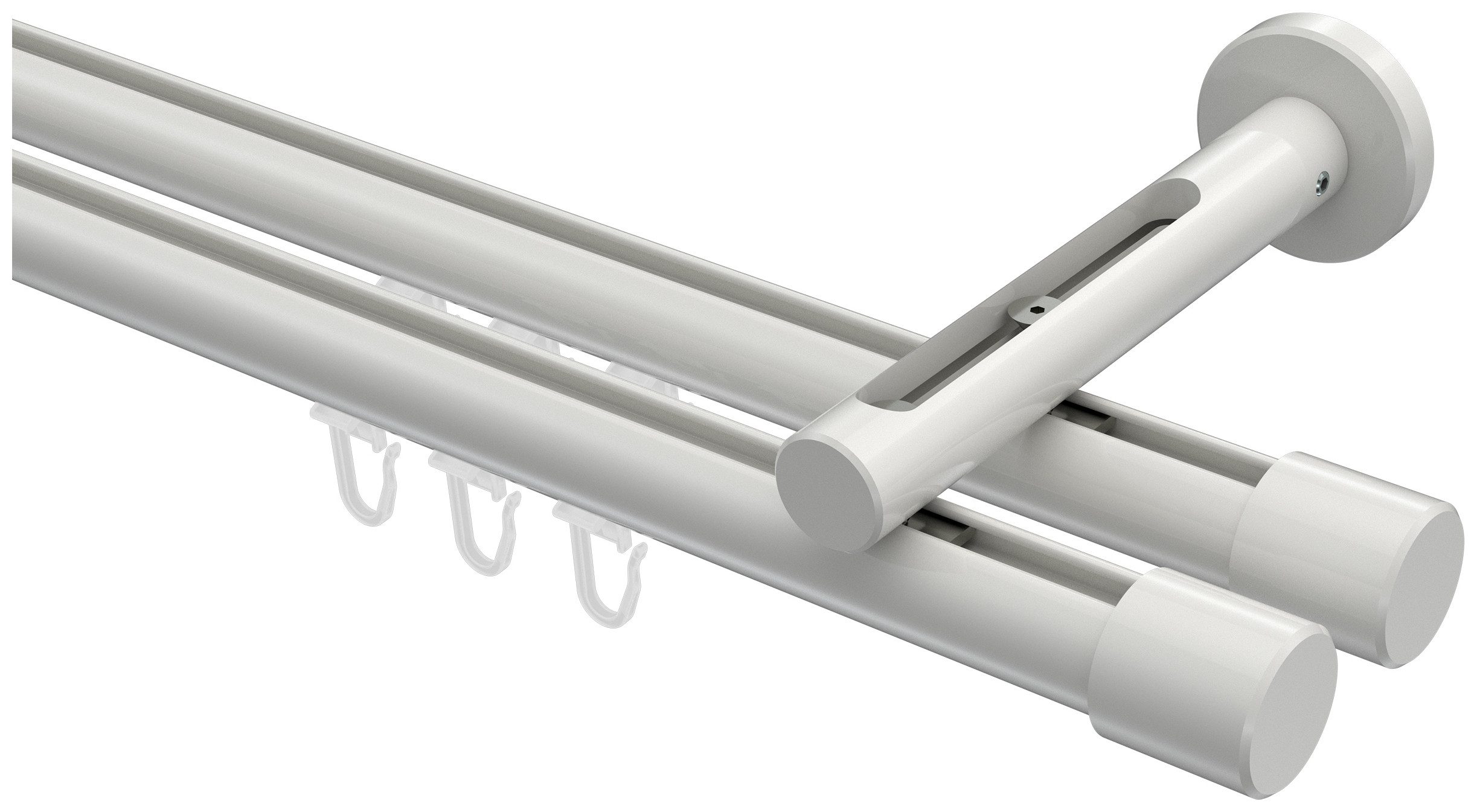 Lieferumfang | Endstücke "Kappe" Weiß Faltengleiter mit Faltenlegehaken Innenlaufprofil 100 cm Weiß Träger 1-3-läufig Langloch Weiß inkl. Befestigungsmaterial |
