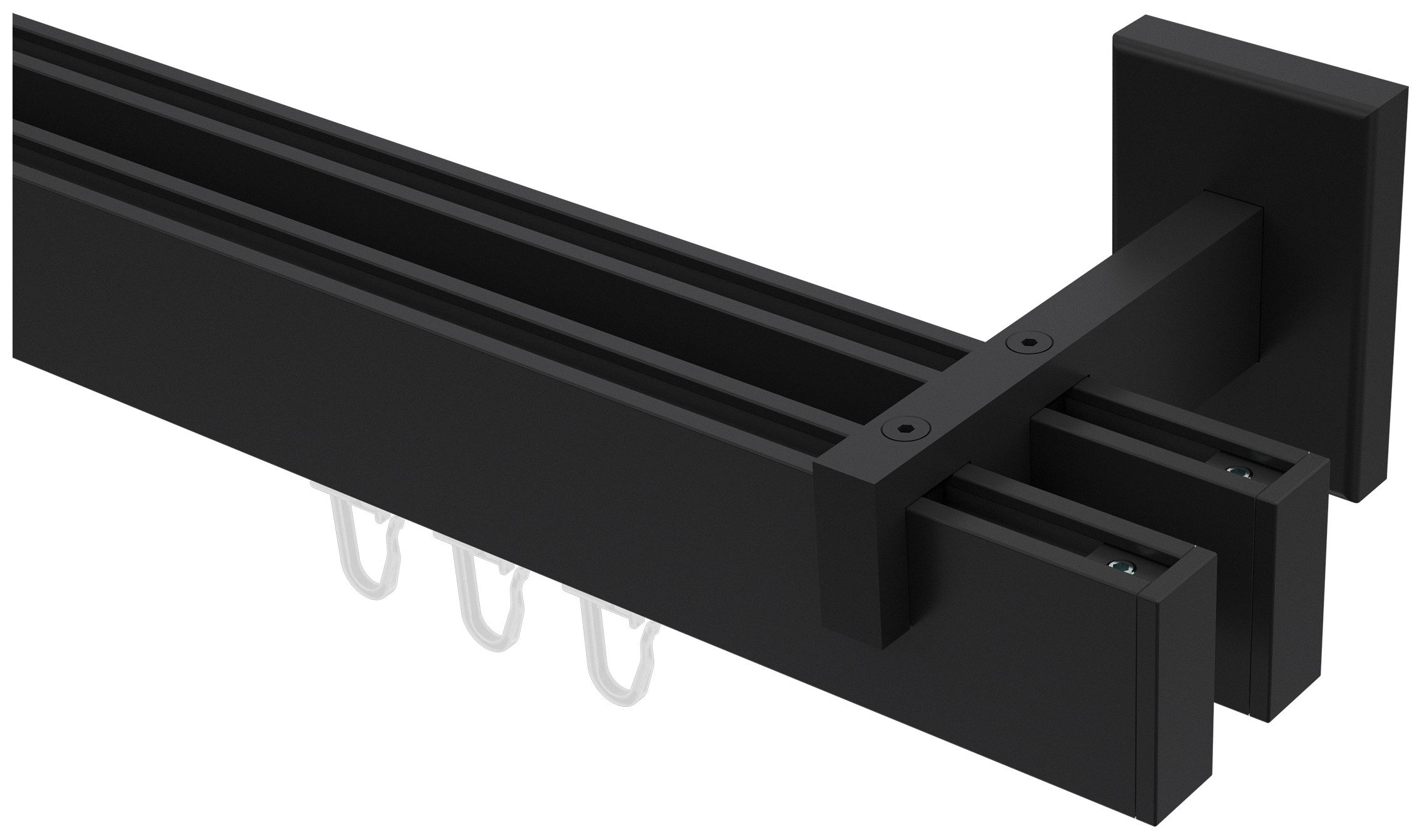 Lieferumfang | Endstücke "Kappe" Schwarz Faltengleiter mit Faltenlegehaken Innenlaufprofile 100 cm Schwarz Träger eckig 2-läufig Schwarz inkl. Befestigungsmaterial |