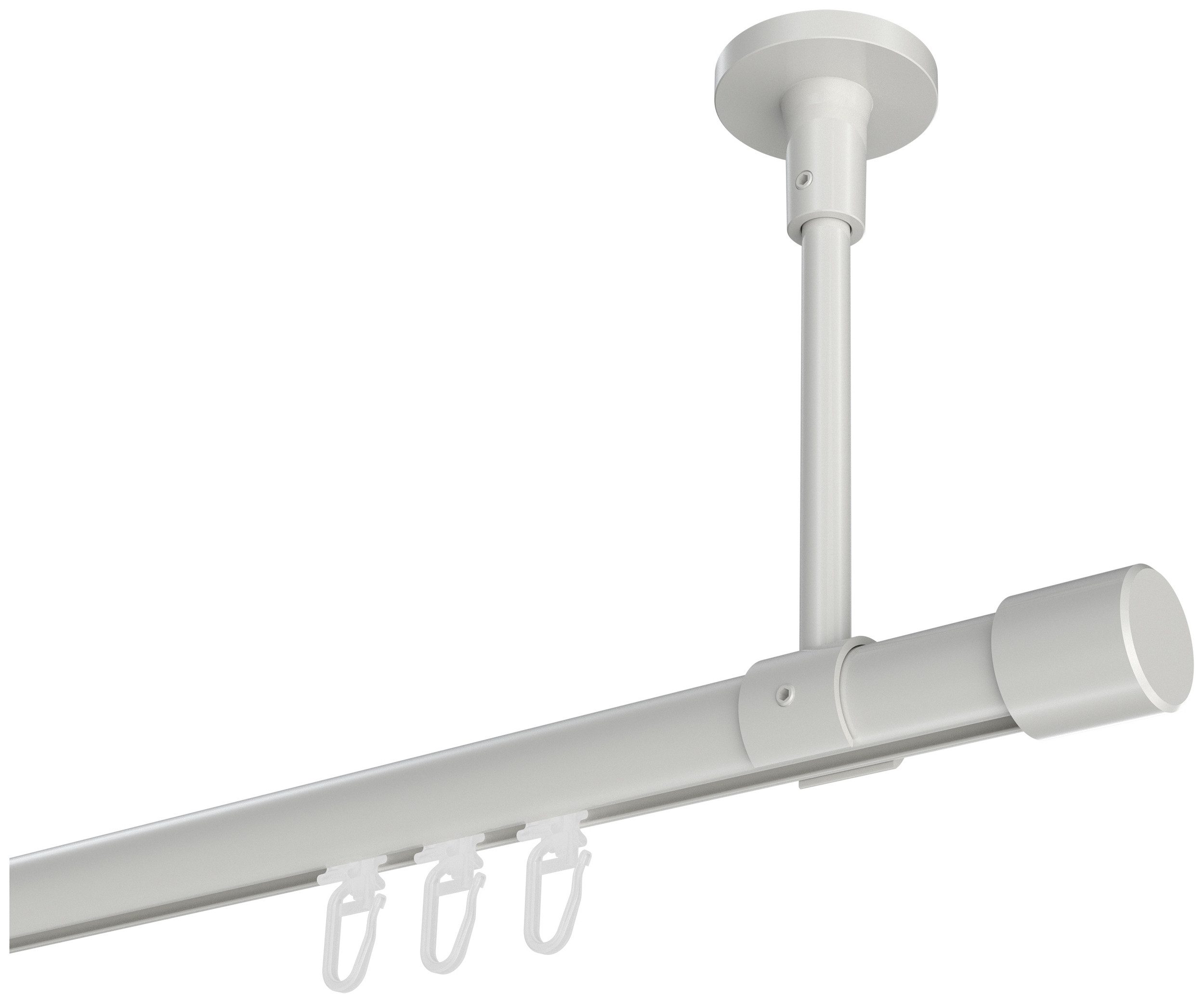 Lieferumfang | Deckenträger 1-läufig Weiß inkl. Befestigungsmaterial Endstücke "Kappe" Weiß Faltengleiter mit Faltenlegehaken Innenlaufprofil 100 cm Weiß |