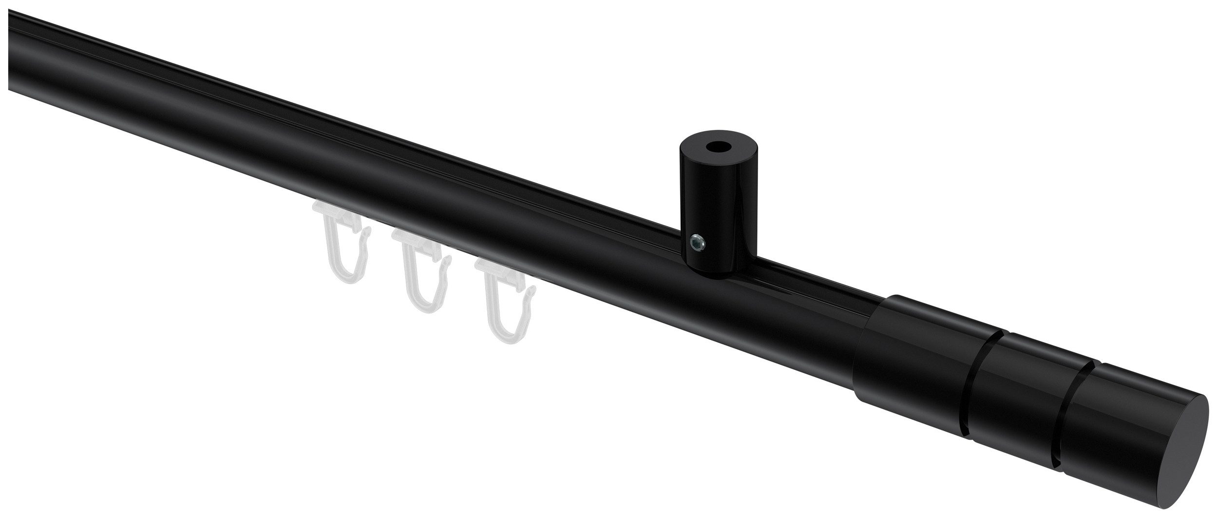 Lieferumfang | Deckenträger Schwarz inkl. Befestigungsmaterial Endstücke "Rillenzylinder" Schwarz Faltengleiter mit Faltenlegehaken Innenlaufprofil 100 cm Schwarz |