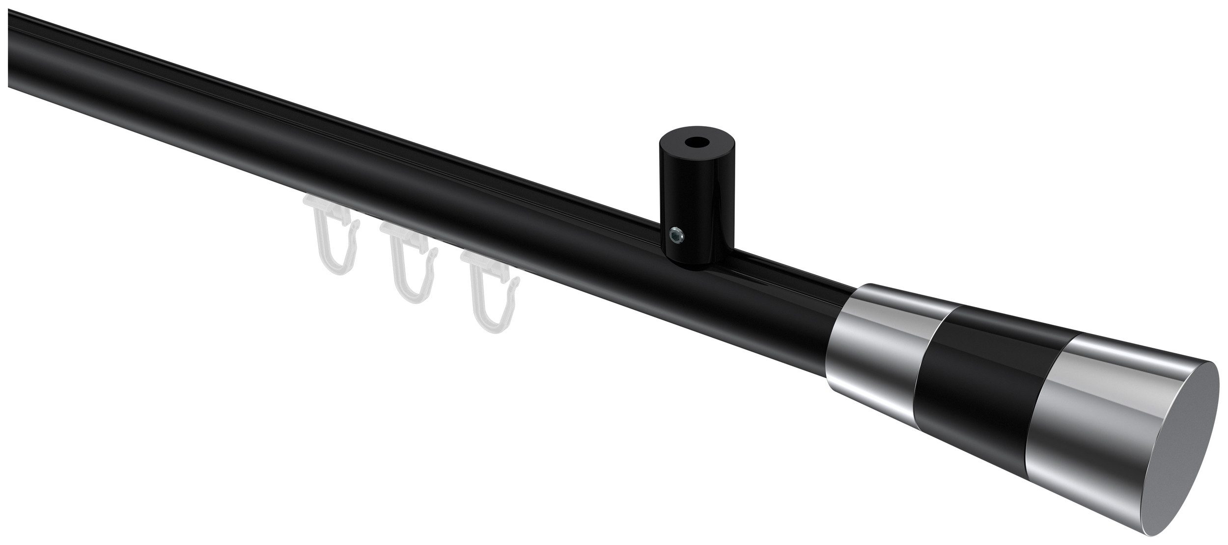 Lieferumfang | Deckenträger Schwarz inkl. Befestigungsmaterial Endstücke "Konus / Bicolor" Chrom/Schwarz Faltengleiter mit Faltenlegehaken Innenlaufprofil 100 cm Schwarz |