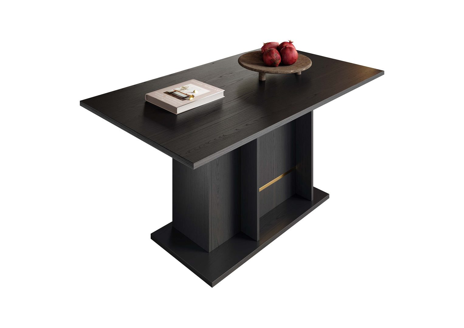 Der stilvolle Esstisch "Pegaso" ist in einem eleganten Dunkelton gehalten, der eine moderne und zugleich zeitlose Optik schafft. Er überzeugt durch sein minimalistisches Design. Das robuste Untergestell sorgt für Stabilität und wird durch eine dezente goldene Zierleiste veredelt, die dem Tisch einen Hauch von Luxus verleiht. Впередe Artikel aus der Serie "Pegaso" finden Sie in unserem Меню.