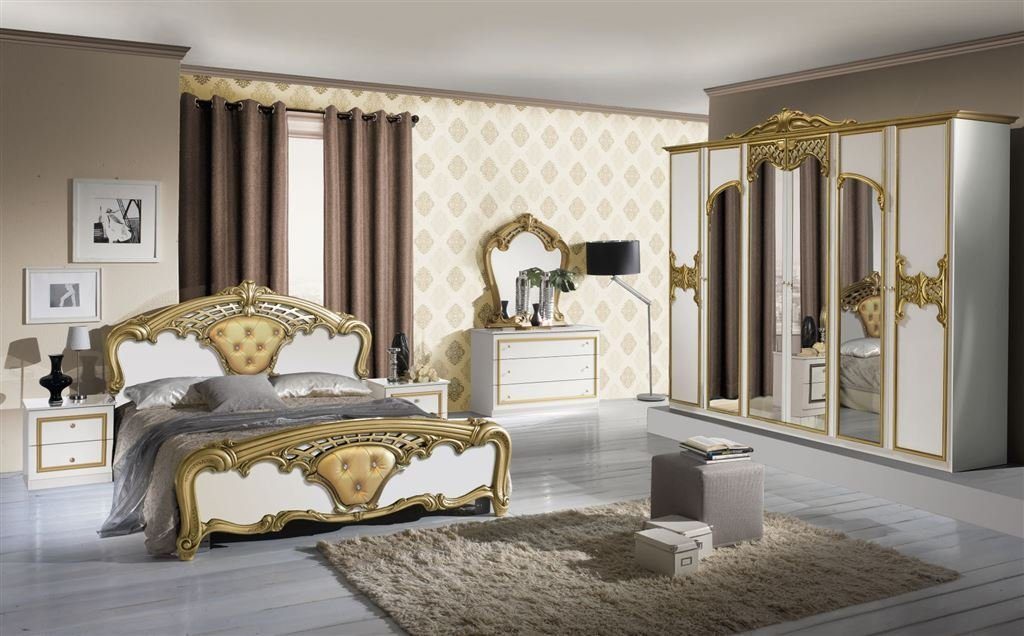 Set beinhaltet | 1x Kleiderschrank, 1x Bettgestell inkl. Lattenrost, 2x Nachtkommode, 1x Wäschekommode, 1x Spiegel |