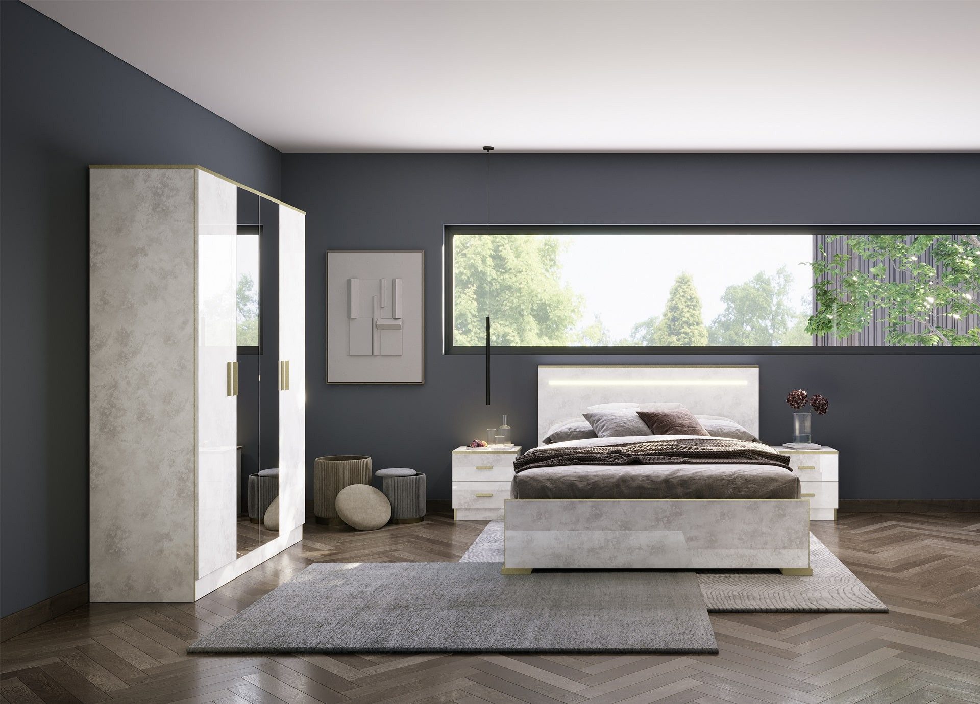 Set beinhaltet | 1x Kleiderschrank. 1x Bettgestell, 2x Nachtkommode |