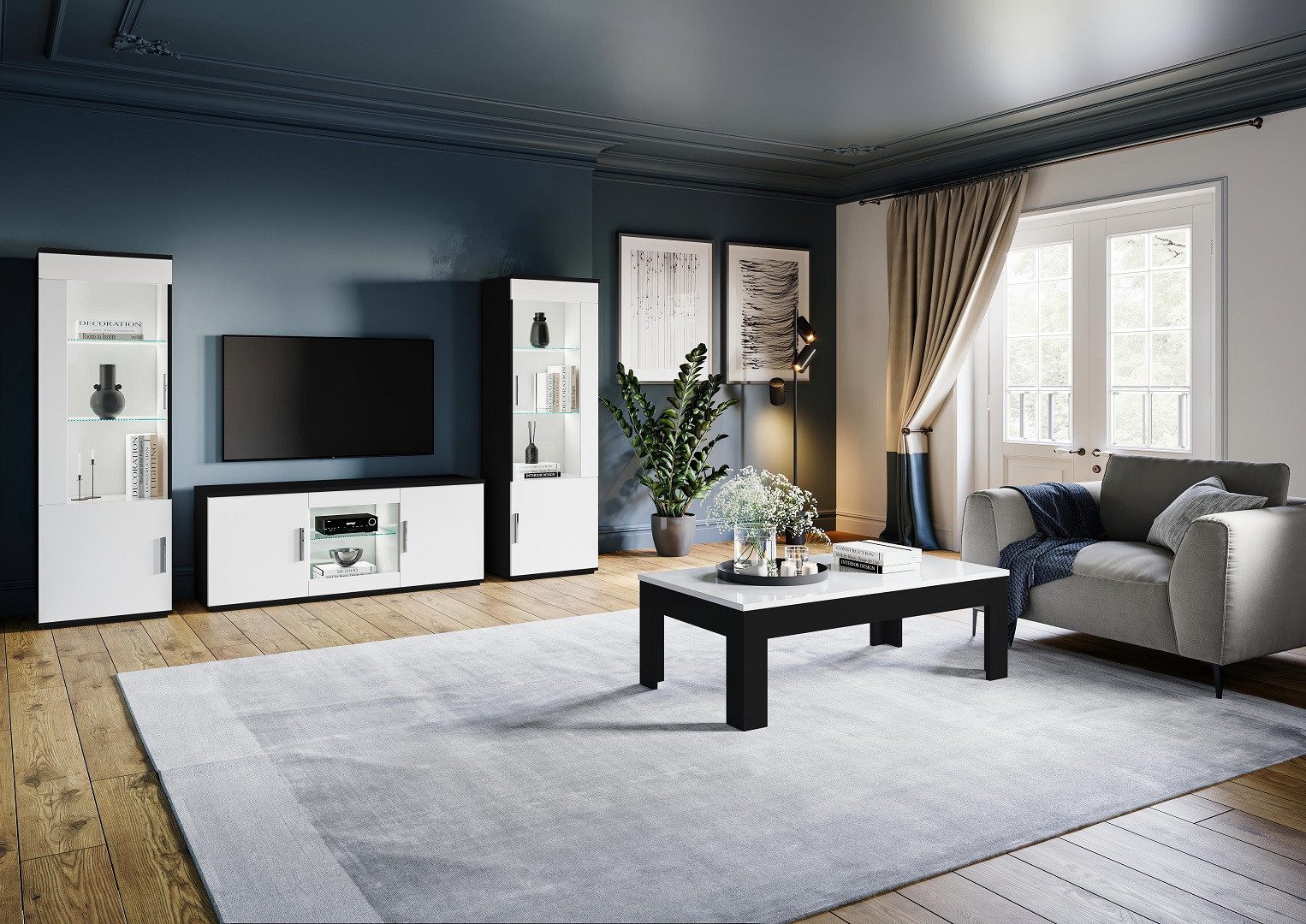 Set beinhaltet | 2x Vitrine, 1x Lowboard, 1x Couchtisch |