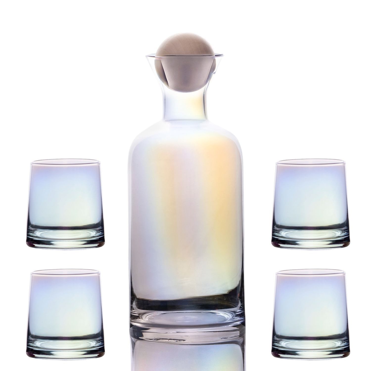 Dieses großzügige Set umfasst eine 1.1 Liter fassende Karaffe und vier stilvolle Gläser mit je 200 ml Füllmenge - die perfekte Kombination für gemütliche Momente mit Familie und Freunden.