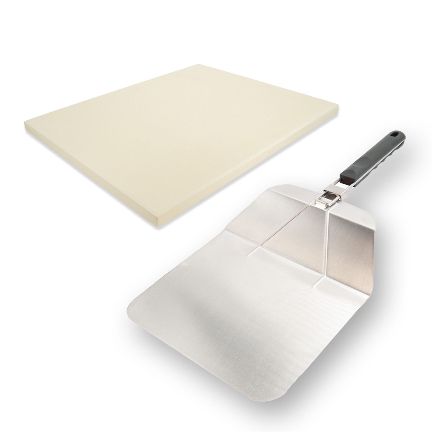 Lieferumfang | 1x Pizzastein Beige, 1x Faltbarer Pizzaschieber |
