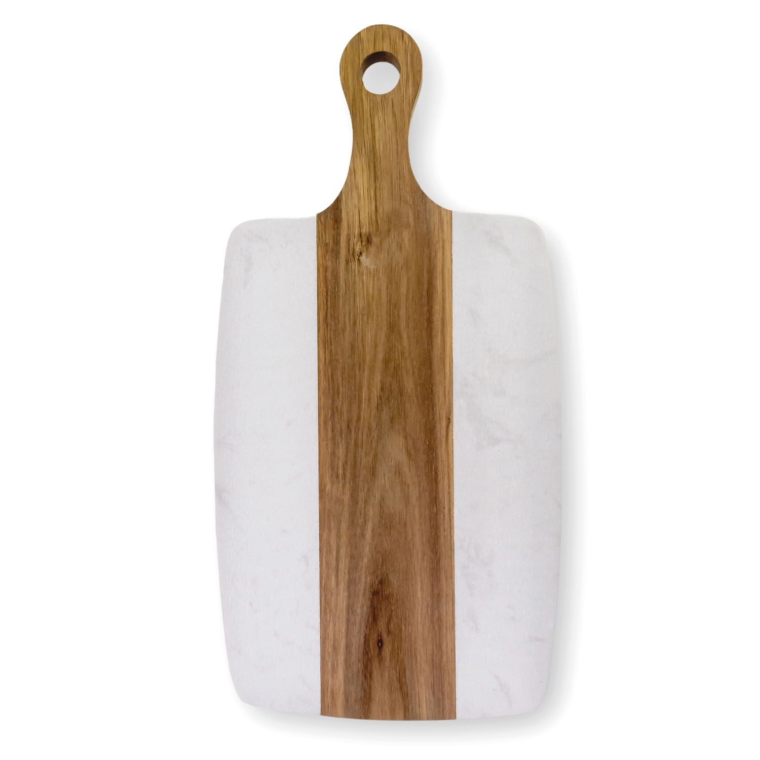 Intirilife präsentiert ein Meisterwerk der Küchenästhetik mit dem Schneide- und Servierbrett aus weißem Mamor und Holz. Auf 35 x 18 x 1.5 cm kombiniert es Funktionalität mit einem außergewöhnlich eleganten Design. Dieses Brett ist ein wahres Multitalent: Es dient nicht nur als robuste Unterlage für Schneidarbeiten, sondern verwandelt sich bei jeder Gelegenheit in eine stilvolle Servierplatte.