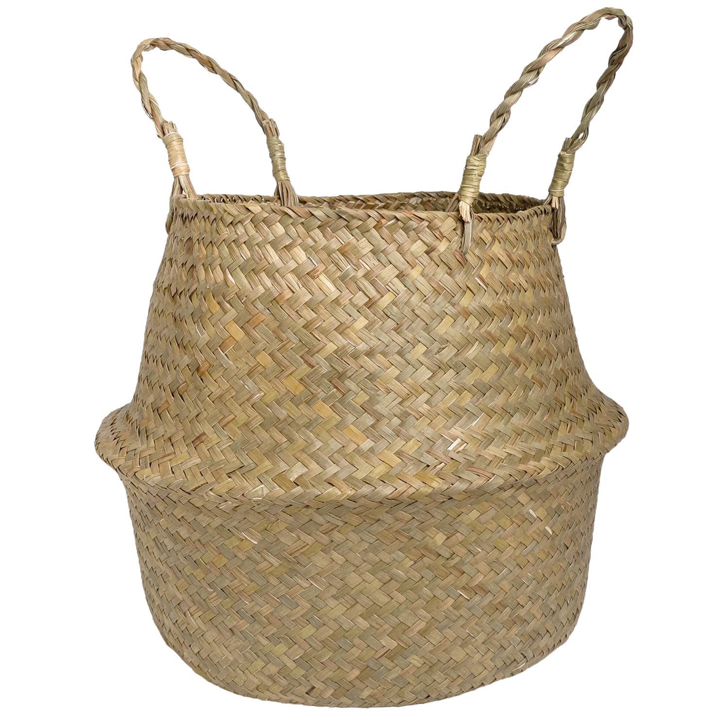 Der Intirilife Bauchkorb aus handgeflochtenem Seegras besticht durch seine natürliche Optik und verleiht jedem Raum ein warmes Ambiente. Mit einem Durchmesser von 34,5 cm und einer Höhe von 28 cm ist er flexibel einsetzbar – ob als Pflanzenkorb, Aufbewahrungslösung oder dekoratives Element. Jeder Korb ist handgefertigt, was ihm eine individuelle Note verleiht. Kleine Unregelmäßigkeiten unterstreichen den handgemachten Charme.