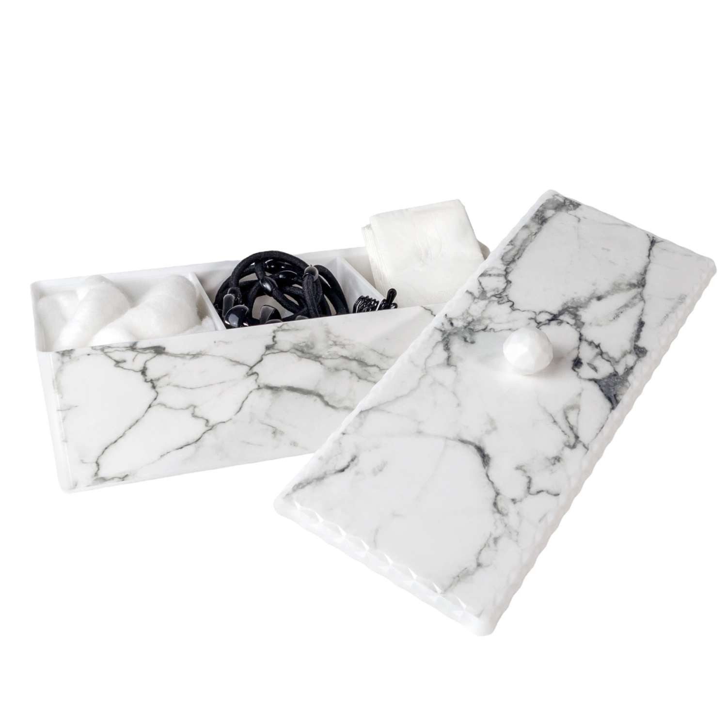Intirilife Spenderbox mit 3 Fächern und Deckel in Marmoroptik