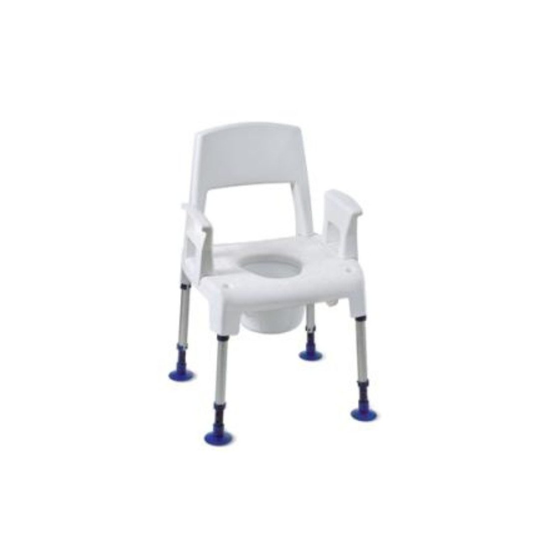 Invacare - Dusch - und Toilettenstuhl PICO 3 in 1 - Multifunktion Dusch - und Toilettenstuhl PICO 3 in 1, Multifunktion sowie großem Hygieneausschnitt, bis 160 kg Der 3 in 1 Dusch - und Toilettenstuhl Pico ist ein richtiges Multitalent. Zu den beiden Funktionen als Duschstuhl oder Toilettenstuhl, kommt zusätzlich die Möglichkeit der Anwendung als Toiletten - Stützgestell. Der Pico ist ein sicherer Begleiter bei der täglichen Körperpflege. Seine kompakten Außenmaße im Vergleich zu seinen großen Innenmaßen machen ihn auch für kleine Badezimmer und Duschen interessant. Ein großer integrierter Hygieneausschnitt kann durch das modulare System, wahlwweise im vorderen oder hinteren Bereich platziert werden. Dieser erleichtert die Intimpflege. Der Duschstuhl Pico hat eine strukturierte, glatte Oberfläche und ist somit leicht zu reinigen. Der Toilettentopf kann nach allen vier Seiten entnommen werden. Er lässt sich werkzeuglos montieren und verfügt über höhenverstellbare Standbeine mit großen Gummifüßen für einen sicheren Stand auch auf glatten Böden. Die hohe Belastbarkeit von 160kg macht ihn auch für schwere und große Nutzer sowie adipöse Patienten interessant. Merkmale/Komponenten Mit Arm - und Rückenlehne. Integrierter Hygieneausschnitt. Nutzung als Toiletten - Stützgestell. Gummifüße für sicheren Stand. Leicht einzustellende Sitzhöhe Leichte Reinigung durch glatte Oberfläche. Werkzeuglose, einfache Montage. Stabile, rutschfeste Füße. Mit Toiletteneimer und Eimerhalter. Rostfreies Material. Farbe: Weiß. Technische Daten Sitzbreite: 430 mm Sitztiefe: 420 mm Sitzhöhe: 425-575 mm Gesamtbreite: 575 mm Gesamttiefe: 520 mm Gesamthöhe: 825-975 mm Breite Hygieneausschnitt: 180 mm Tiefe Hygieneausschnitt: 145 mm Abstufung Höhenverstellung: 25 mm Gewicht: 4,8 kg Belastbarkeit: 160 kg