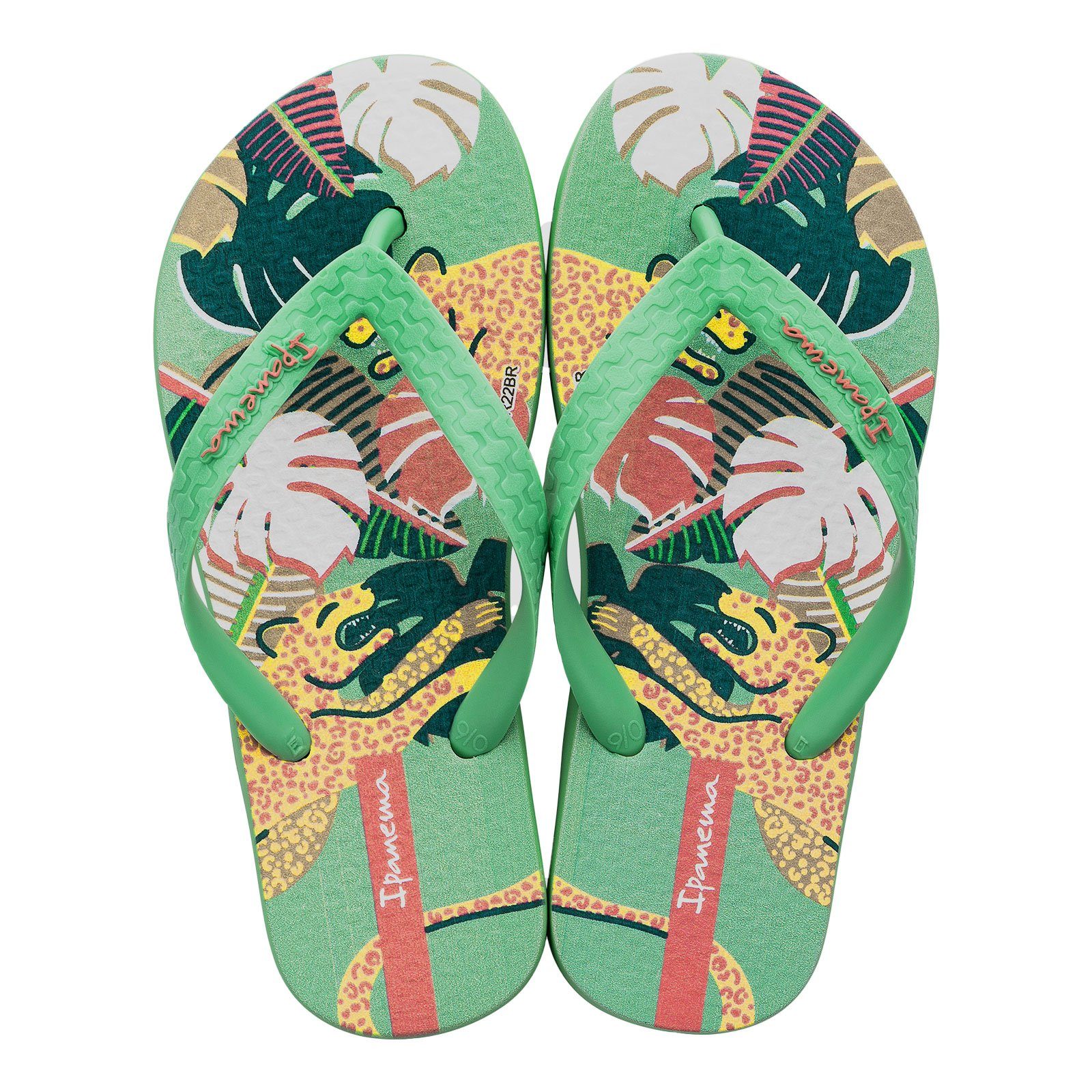 Da wird sich deine Tochter freuen, denn diese Zehentrenner komplettieren jeden Sommer-Look. Sie bringen dank der weichen und flexiblen Sohle ein rundum angenehmes Tragegefühl und jede Menge Komfort. Die blumigen Prints auf der Innensohle sorgen für einen exotischen Look und setzen Mädchenfüße exklusiv in Szene. Dein Kind wird diese Zehentrenner lieben! Ein Markenschriftzug als Print auf der Innensohle verleiht den Schuhen einen charakteristischen Touch. Auch auf dem strukturierten Riemchen ist ein Markenschriftzug angebracht. In diesen Kinderzehentrennern steht einem perfekten Sommertag nichts mehr im Weg. Ipanema steht für eine umweltfreundliche und vegane Produktion und das Unternehmen bietet faire Arbeitsbedingungen für seine Mitarbeiter. Zudem sind die Produkte zu 100% recycelbar.