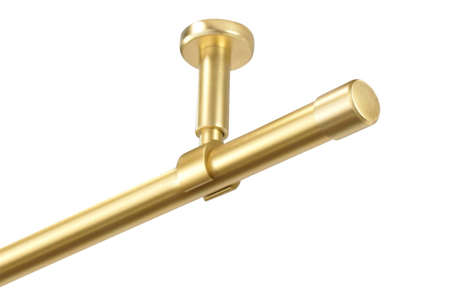 Die Gardinenstange aus Metall ist für die Montage an der Decke geeignet und wird von uns als Set geliefert. In der Regel benötigen Sie kein weiteres Zubehör. Neben den Deckenträgern sind auch die Rohre aus Edelstahl bzw. Aluminium in den Farben schwarz und Messing matt sowie die Endkappen im Lieferumfang enthalten. Sie können die Gardinenstangen in den Farben Edelstahl, Messing matt und schwarz in verschiedenen Длинаn bestellen. Die Montage der Deckenträger kann mit einer oder drei Schrauben erfolgen, beide Вариантыn sind im Lieferumfang enthalten. Für die 3-Loch Montage verwenden Sie die 3-Lochplatte mit der Rosette und für die 1-Loch Montage lassen Sie die 3-Loch Platte und die Rosette weg, die Schraube wird dann direkt durch den Deckenträger in die Decke geschraubt. Der Deckenabstand bis zur Mitte der Trägeröffnung ist variabel zwischen 7,5 cm und 10,5 cm einstellbar. Bei der 1-Loch Montage ist der Deckenabstand 1 cm geringer. Die Gardinenstangen zur Deckenmontage bis einschließlich Длина 200 cm liefern wir in einem Stück. Die Длинаn 240 cm - 400 cm werden in der Mitte geteilt mit zusätzlichem Deckenträger und Rohrverbinder geliefert. Der zusätzliche Deckenträger muss an der Verbindungsstelle montiert werden. Die angegebenen Длинаn beziehen sich auf die reine Stangenlänge. Die beiden Endstücke verlängern die Gardinenstange insgesamt um ca. 2,5 cm
