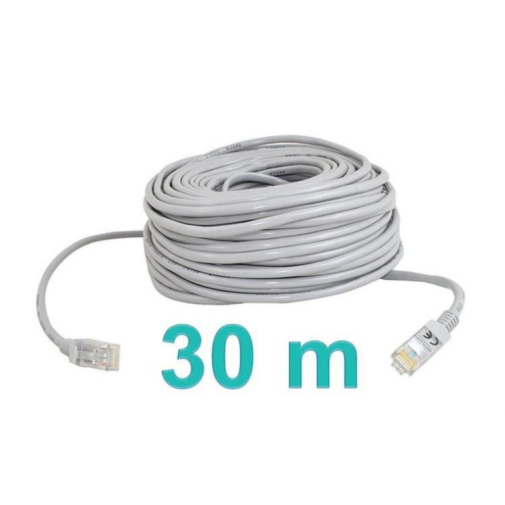 Das 30 m lange LAN-Kabel verbindet Computer, Router, Modem oder andere Geräte sicher und schnell mit dem Internet oder einem lokalen Netzwerk. Es handelt sich um ein Twisted-Pair-Kabel zur zuverlässigen Datenübertragung zwischen zwei Geräten.
