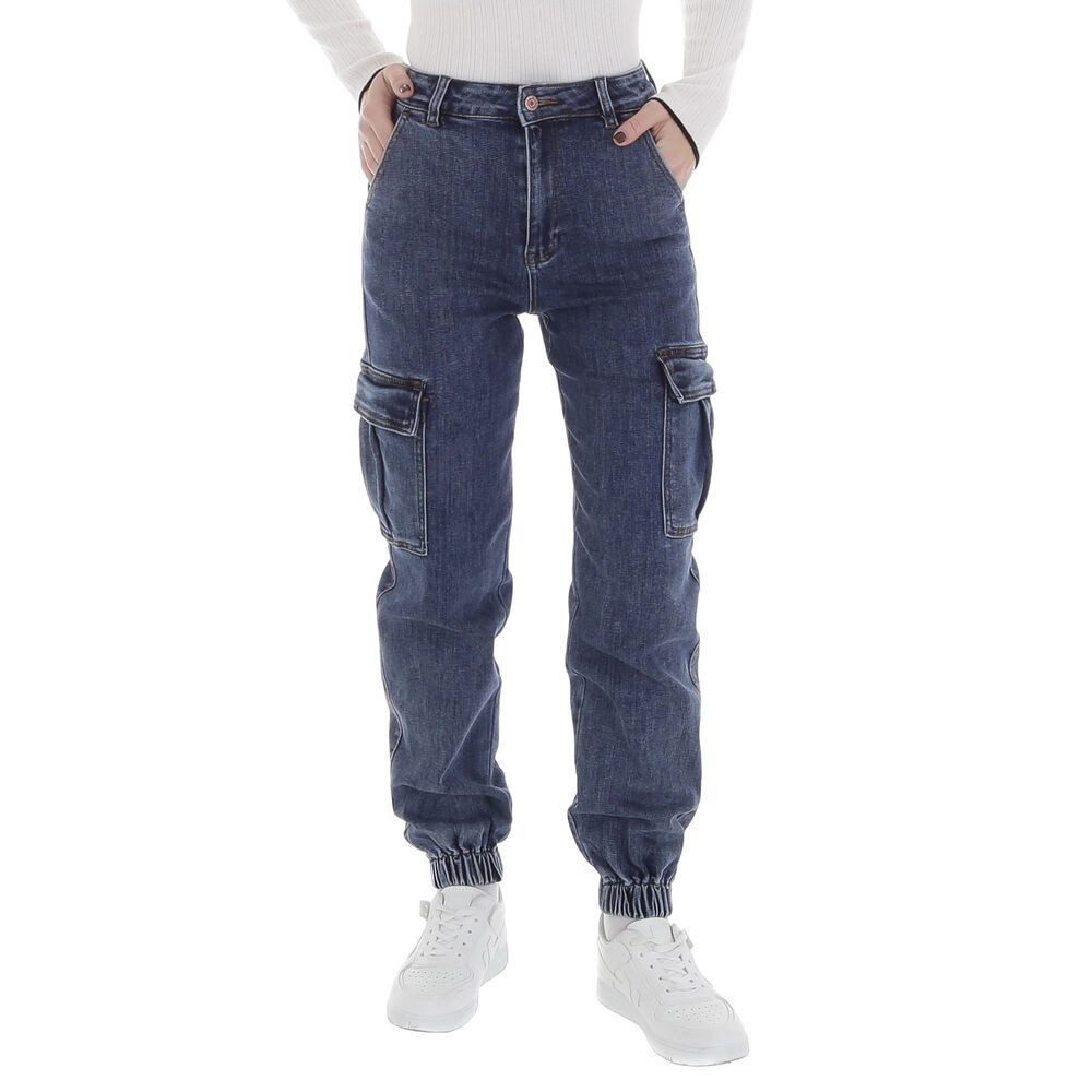 Besondere Merkmale | Used-Look Stretch High Waist Jeans in Blau |