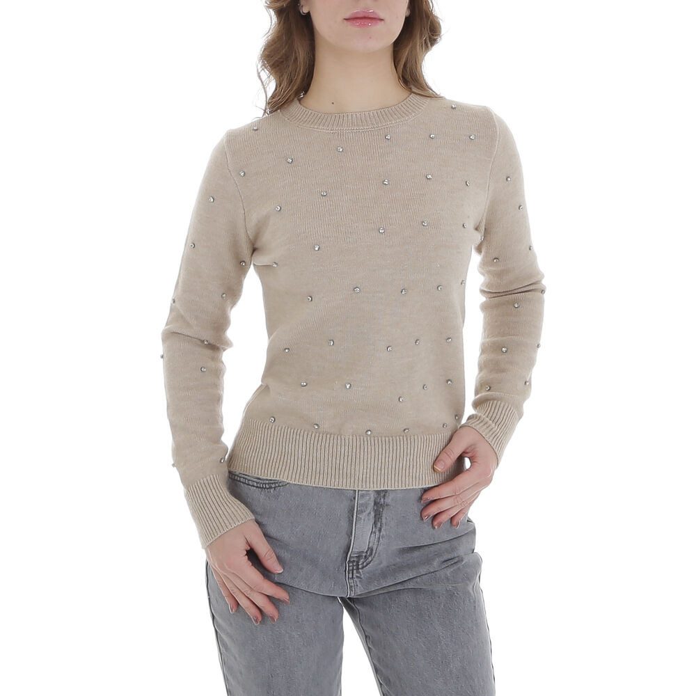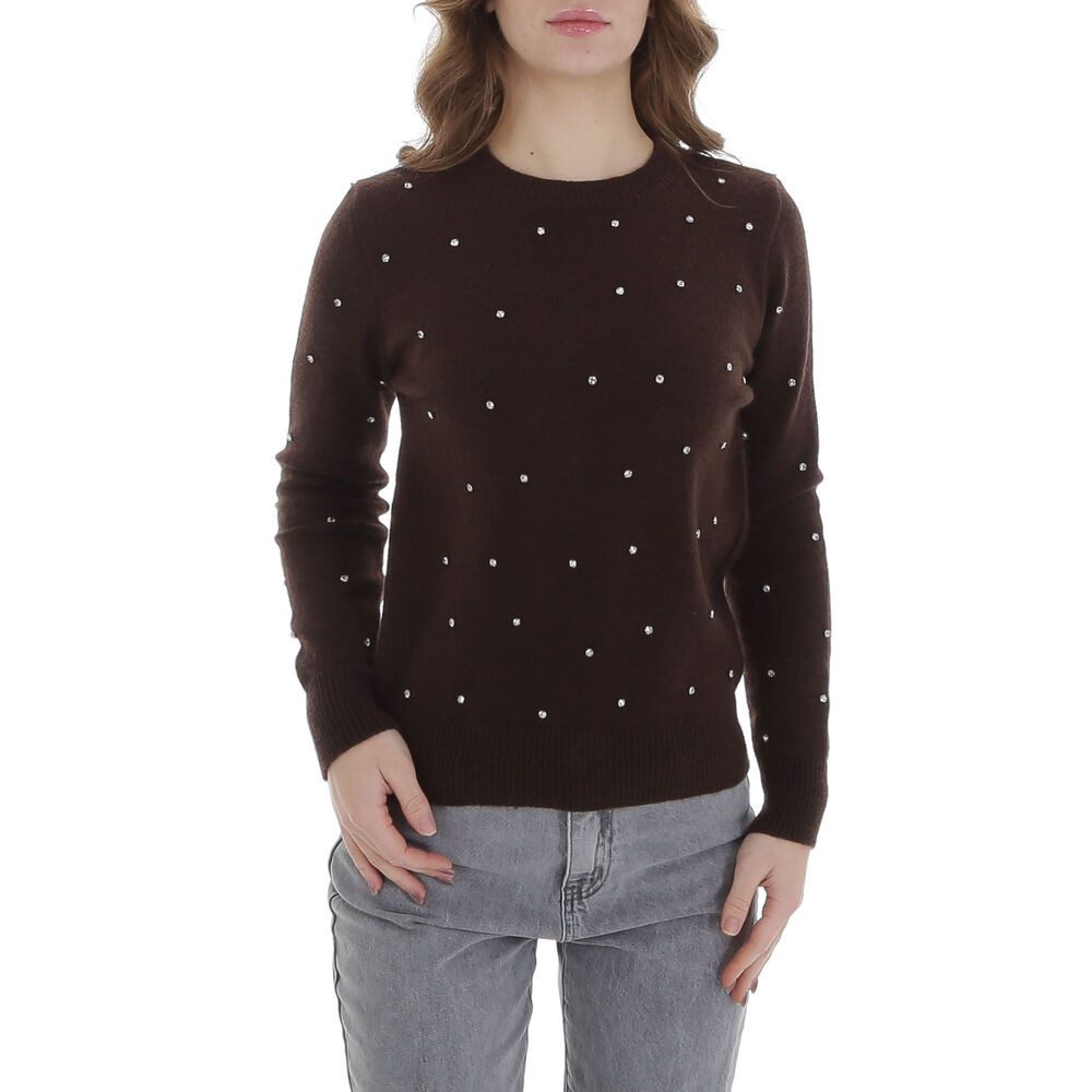 Besondere Merkmale | Strass Stretch Strickpullover in Braun |