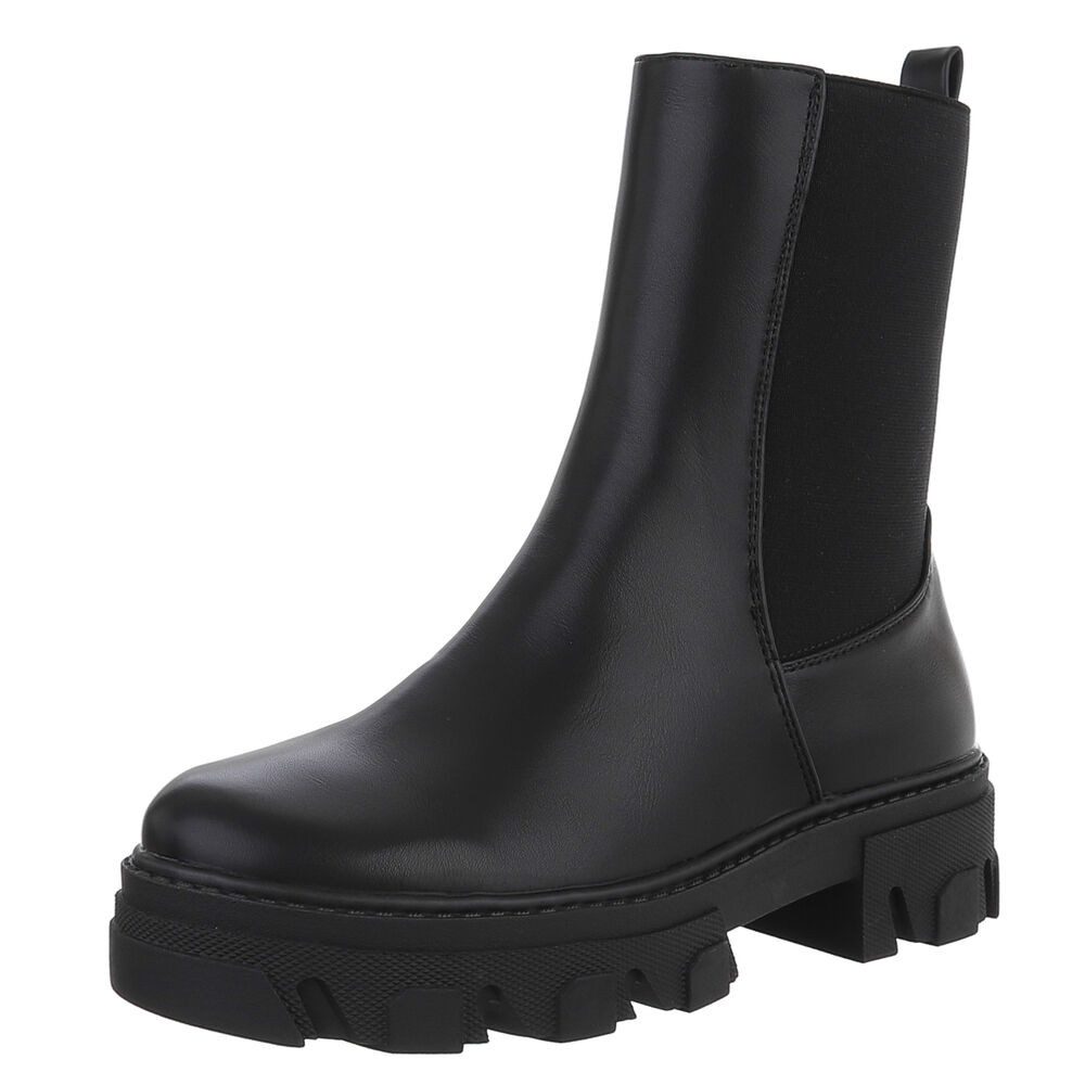 Blockabsatz Plateaustiefeletten in Schwarz