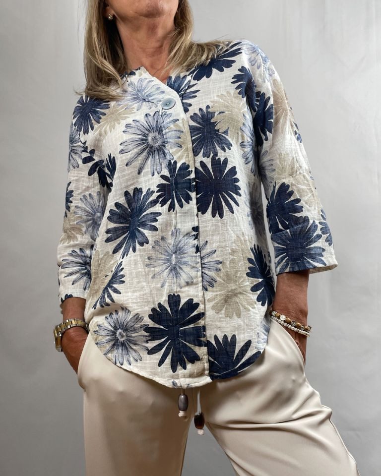 Erleben Sie sommerliche Leichtigkeit mit der ITALY VIBES Bluse NOELINA – die ideale Wahl für warme Tage! Diese stilvolle Kurzarmbluse überzeugt mit einem farbenfrohen Allover-Blumenprint, der jedem Outfit eine frische und feminine Note verleiht.