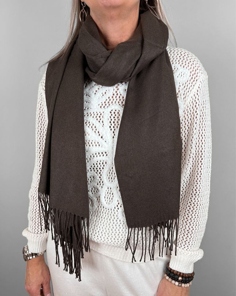 Die feinen Drehfransen an den Enden und die weiche Feinstrickoptik verleihen dem Schal eine edle Note. Dank seiner One-Size-Passform lässt er sich mühelos zu jedem Outfit kombinieren – von casual bis elegant. Ein echtes Must-have für alle, die Wert auf Stil, Qualität und Komfort legen.