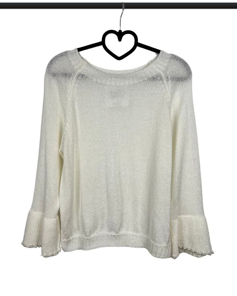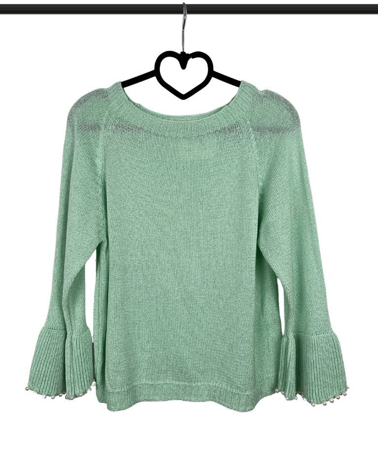 Der ITALY VIBES Strickpullover ORIETTA ist ein dünner Langarm-Pullover mit Perlen am Ärmelende, perfekt für casual und sporty Outfits. In verschiedenen Farben erhältlich.