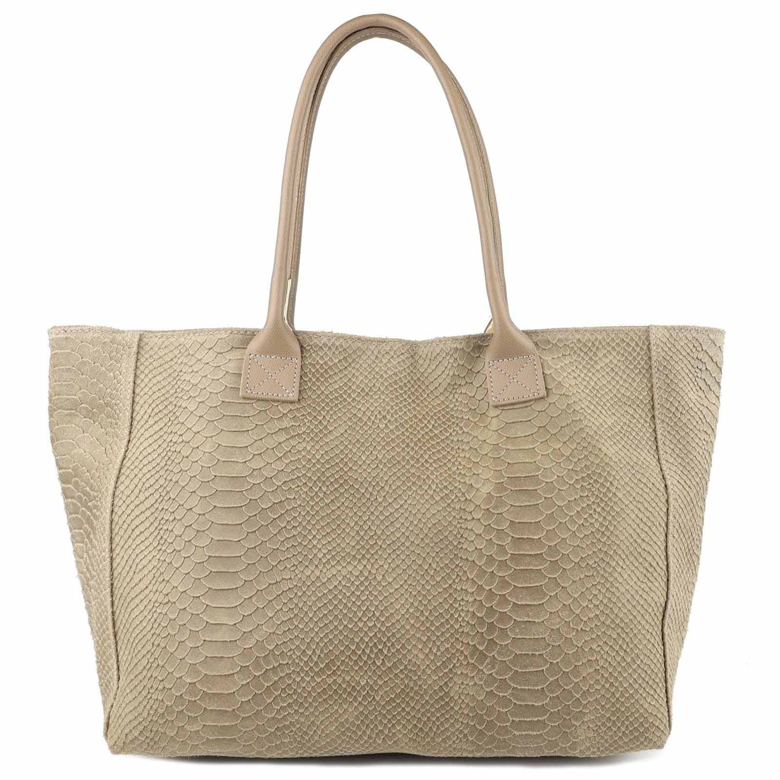 Das italienische Wildleder erfährt durch die Schlange-Prägung das gewisse Etwas - einige Details und die markante Form runden den glamourösen Look ab.
