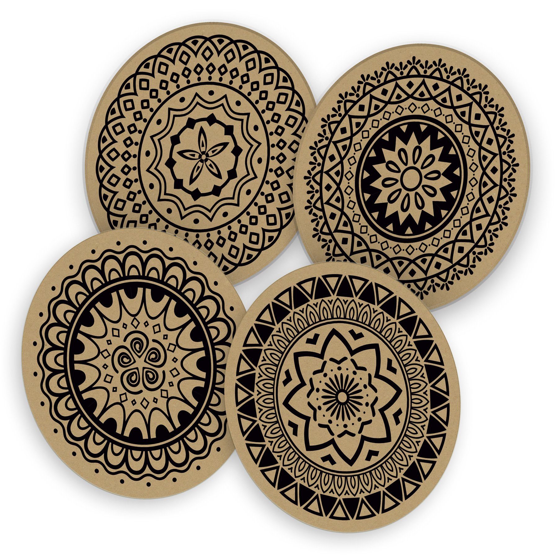 • itenga 40x Bierdeckel rund Untersetzer Mandala Kraftpapier 4 Motive 10,7 cm