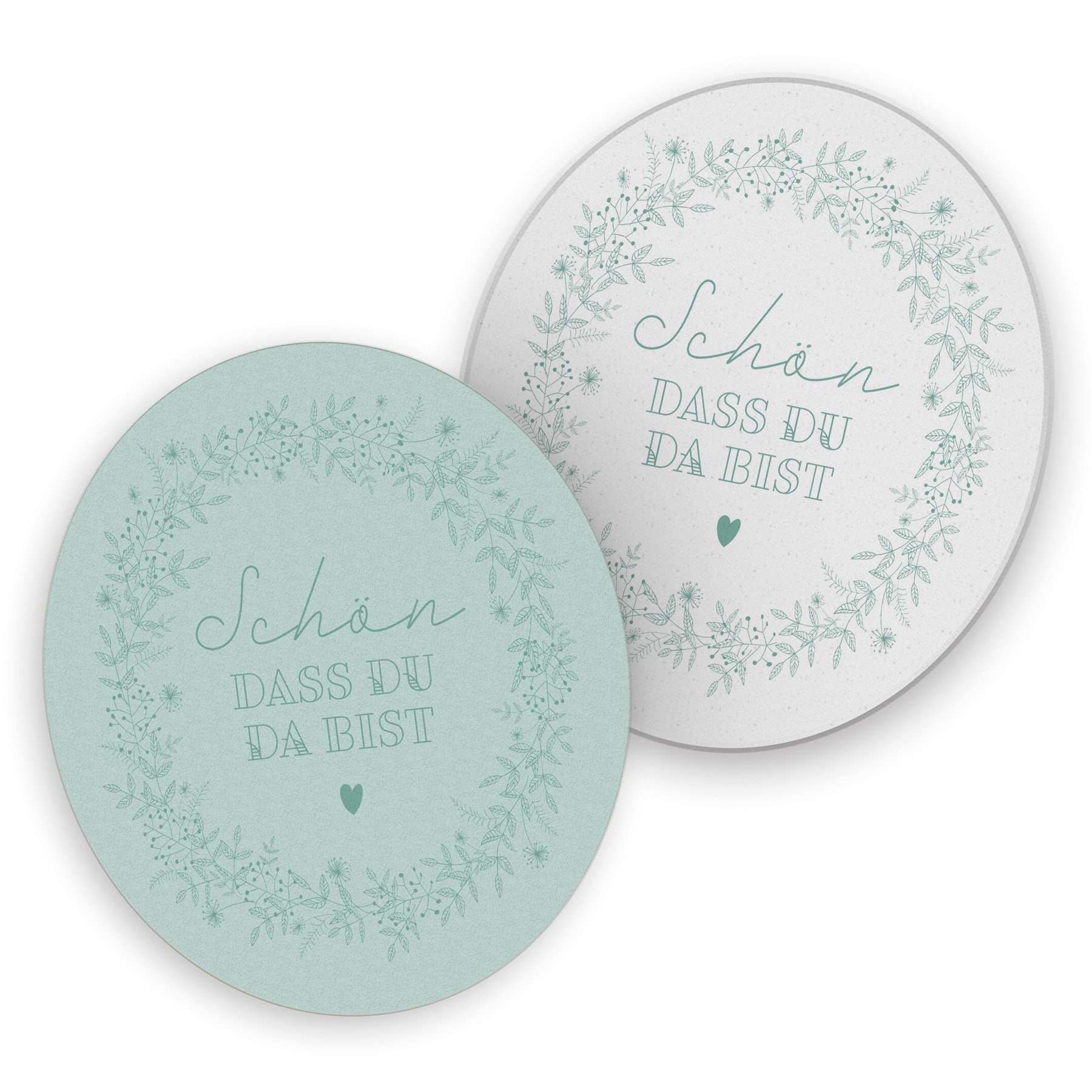 itenga Bierdeckel itenga 40x Bierdeckel rund Schön dass du da bist pastell mintgrün türk