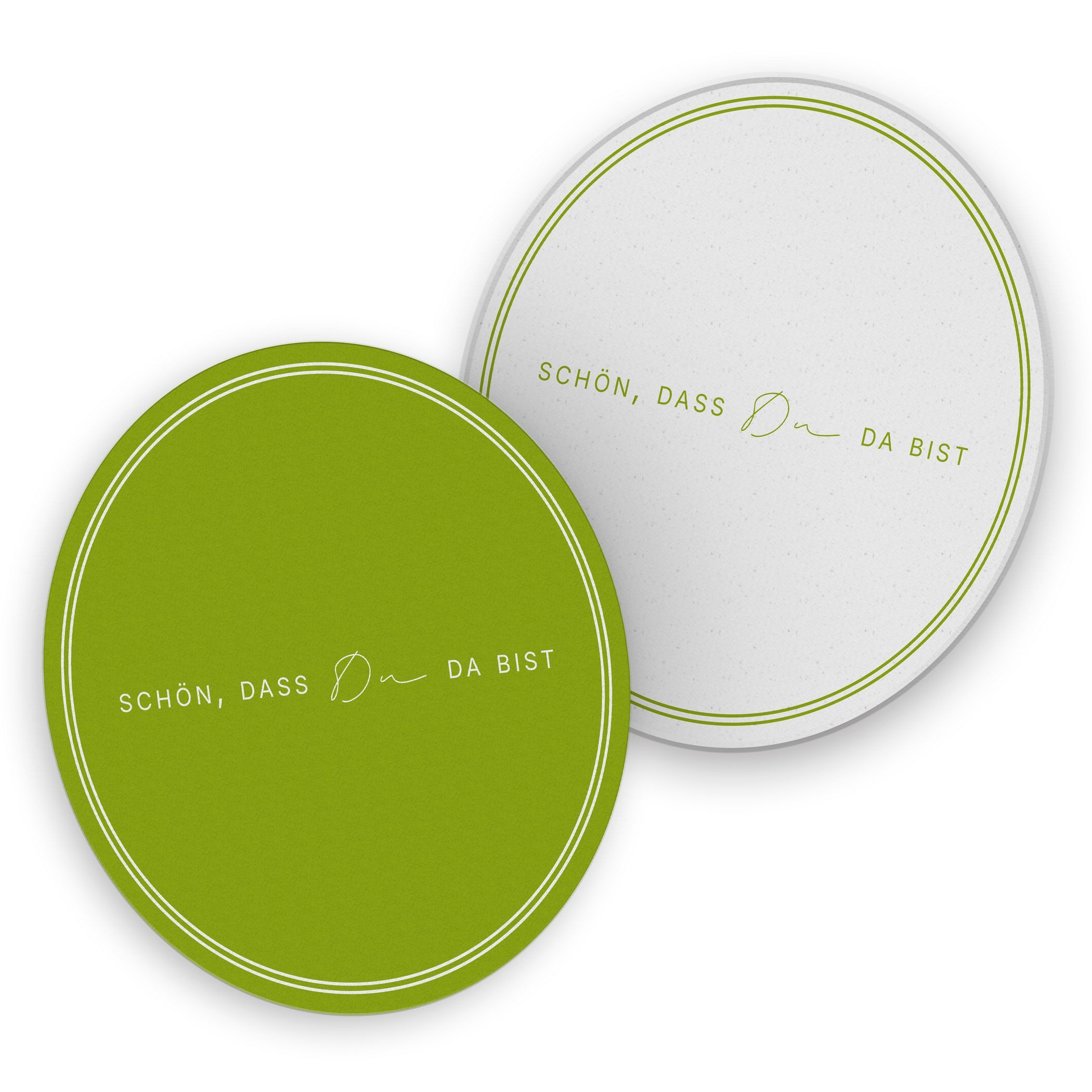 • ITENGA 40x Bierdeckel rund Schön dass du da bist V3 frühlingsgrün