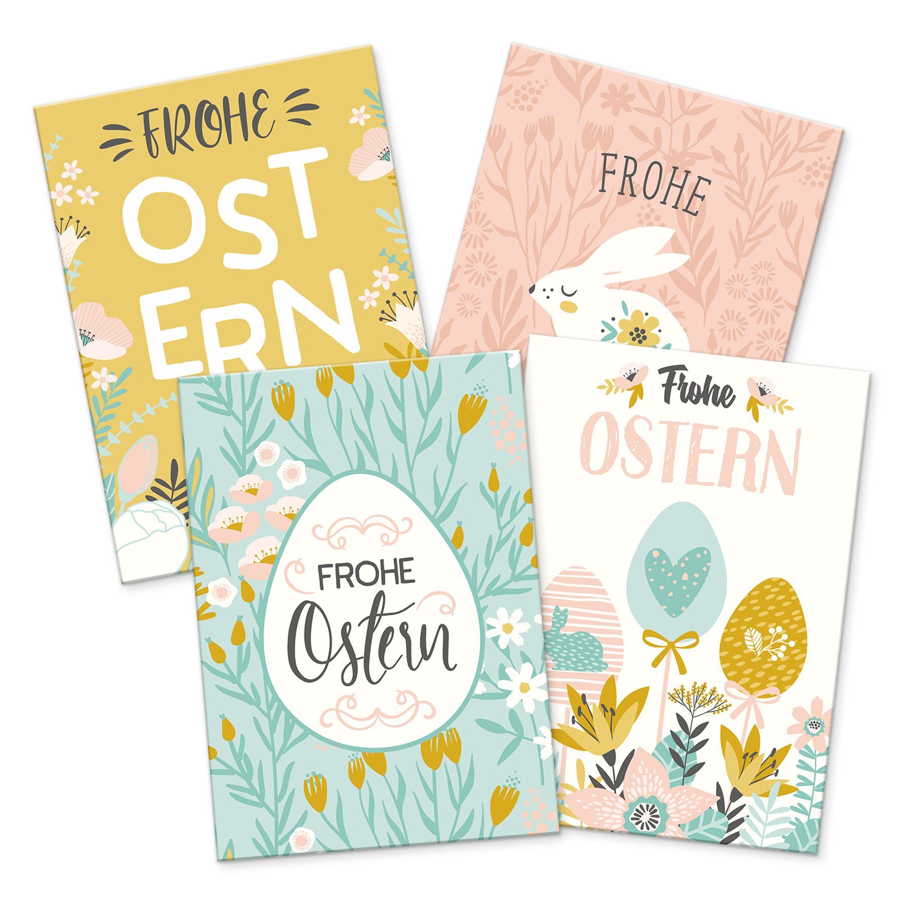 • itenga 12 x Osterkarte Postkarte Grußkarte Frohe Ostern 4 Motiven DIN A6 pastell