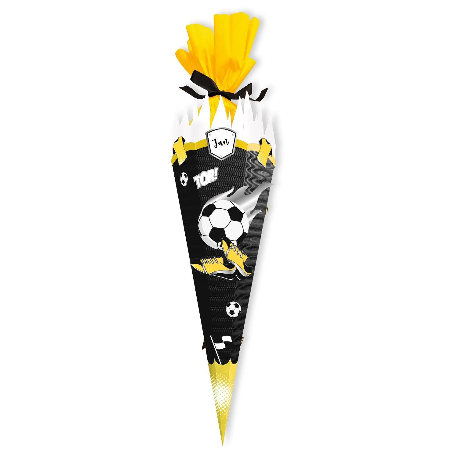 • itenga Bastel Schultüte Set 68cm Fußball Vereinstüte GELB SCHWARZ Zuckertüte neu