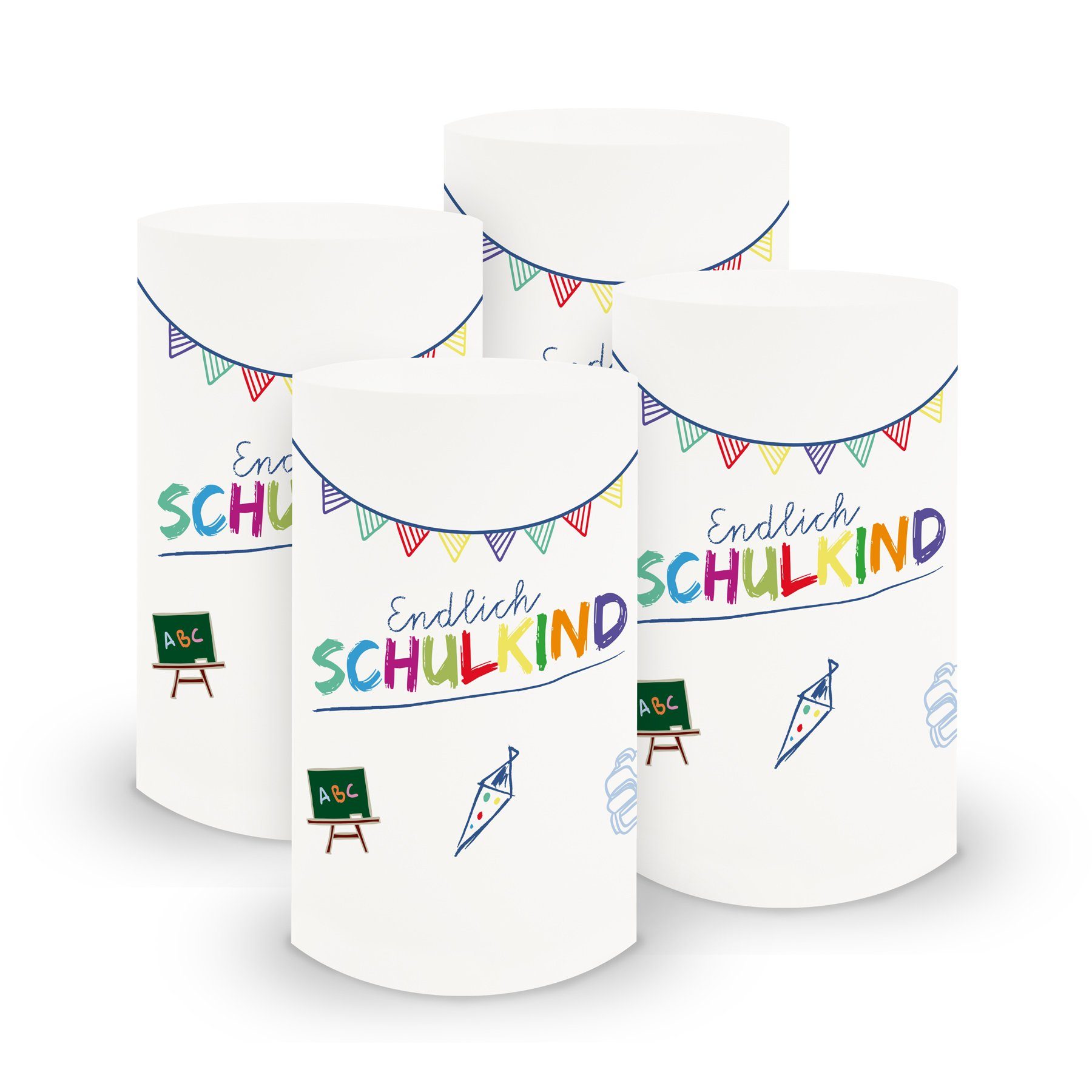 Die Windlichter sind aus hochwertigem Material gefertigt und sorgfältig verarbeitet, um eine ansprechende Optik und Langlebigkeit zu gewährleisten. Sie sind mit dem Aufdruck "Endlich Schulkind" versehen, was sie zu einer passenden Dekoration für den Schulstart macht.
