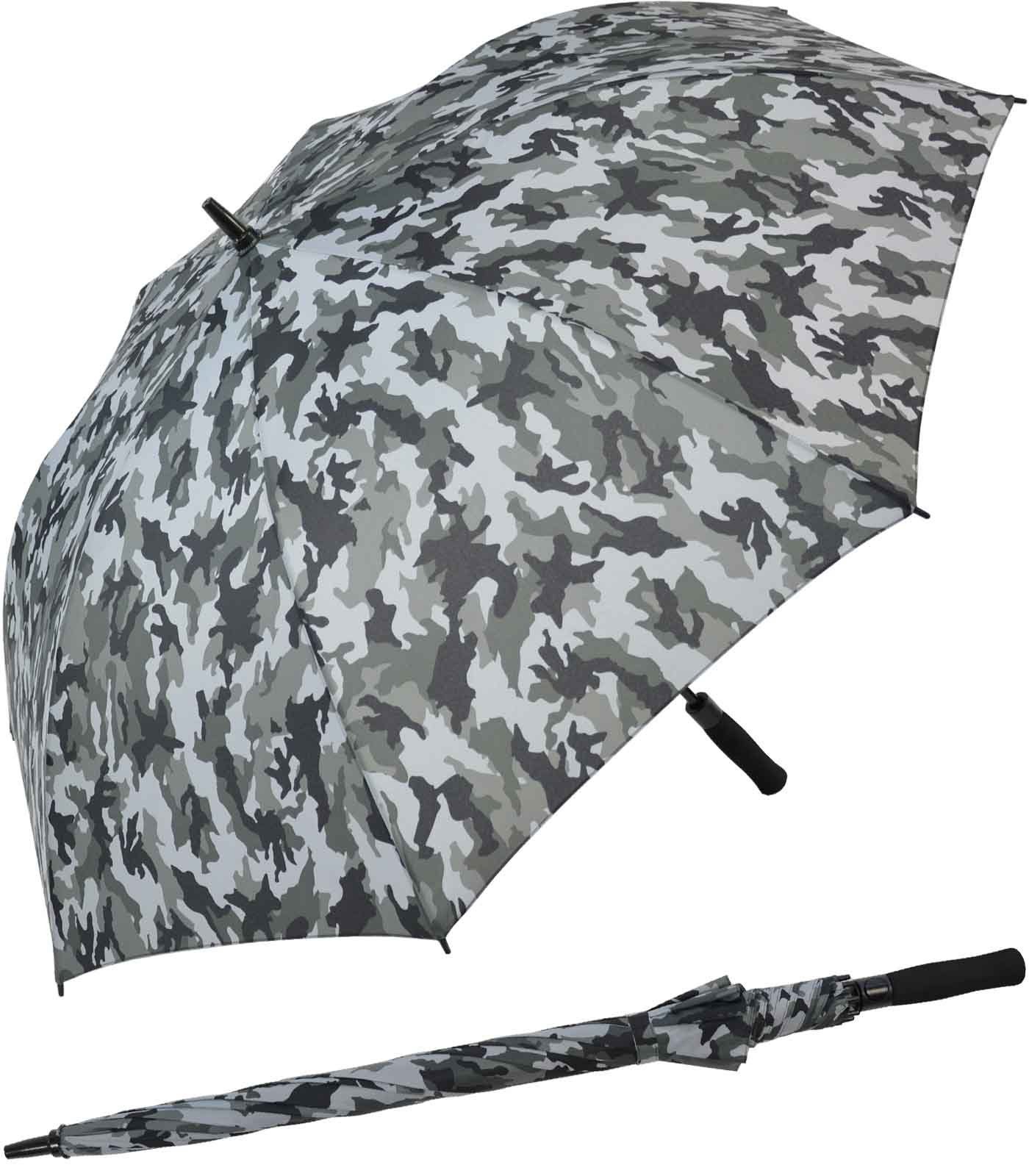 Dieser praktische und moderne XXL Stockschirm schützt durch sein sehr großes Dach zuverlässig zwei Personen vor Regen. Durch das Fiberglas-Gestell ist er leicht und flexibel und mit seinen Tarnfarben liegt er zudem voll im Trend.