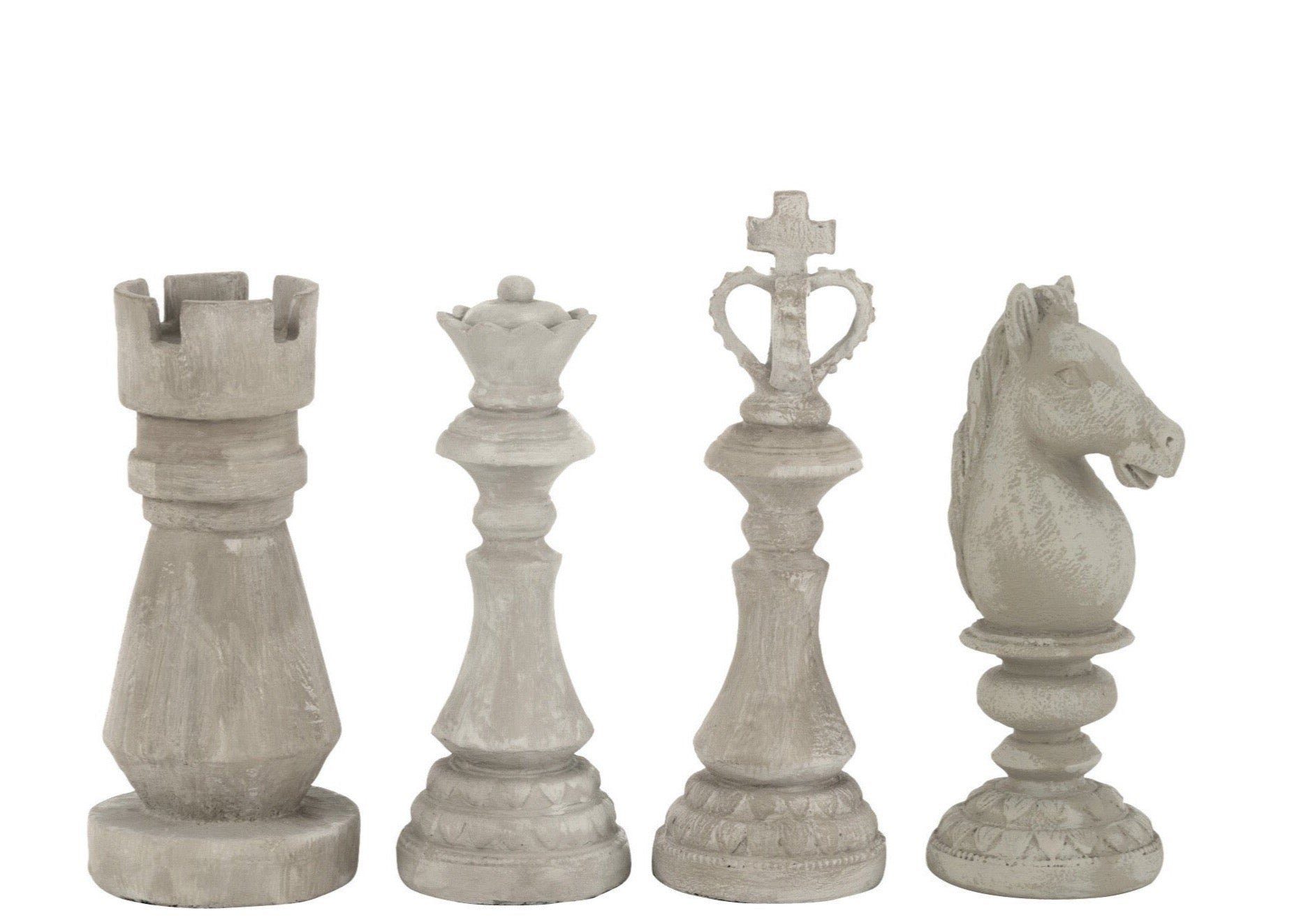 Erhöhen Sie den Stil-Quotienten Ihres Wohnraums mit diesem exquisiten 2x 4er-Set von Miniatur-Schachfiguren aus hochwertigem Polyresin, präsentiert in einem vielseitigen Grauton.