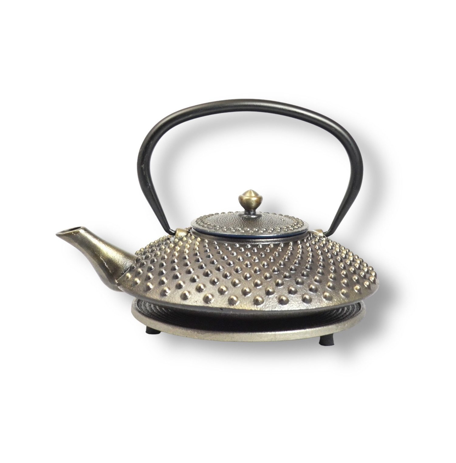 Gusseiserne Produkte der Marke JA-UNENDLICH sind handgefertigte Kunstwerke, hergestellt in dem seltenen Sandgussverfahren nach japanischer Tradition. Mit bis zu 40 aufwendigen Arbeitsschritten ist jedes Produkt ein farbenfrohes Unikat, Farbe und Grösse können geringfügig abweichen. Qualität, Ästhetik und Raffinesse sind drei Schwestern, die unterschiedlicher nicht sein könnten und sich doch perfekt ergänzen. Gemeinsam gehen Sie auf Entdeckungsreise. „Genauso stelle ich mir eine Wunderlampe vor - auch wenn ich sagen muss, dass diese Teekanne keine Wünsche offen lässt“, sagt Ästhetik. „Da muss ich dir absolut recht geben, Schwesterherz“, pflichtet Qualität ihrer Schwester bei, „diese Kanne Kambin ist nicht nur aus hitzebeständigem Material, sondern auch hübsch anzusehen.“ Raffinesse streicht über die Noppen auf der Kanne. Sie blickt ihre Schwestern an und nickt lächelnd. Dem hat sie nichts mehr hinzuzufügen. Die Teekanne aus Gusseisen ist innen durchgehend emailliert und wird mit einem farblich passenden Untersatz aus Gusseisen, sowie einem Edelstahl-Sieb geliefert. Der Untersatz dient zum Schutz einer jeden Tischplatte. Gusseisen zeichnet sich durch seine Fähigkeit aus, Hitze und Kälte länger zu speichern – ein Vorteil warmen Tee länger zu genießen, aber auch um Getränke zu kühlen. Die beigelegte Gebrauchsanleitung verrät wie man sich lange mit der richtigen Anwendung und der materialbedingten Langlebigkeit an diesem einzigartigen und formschönen Produkt.