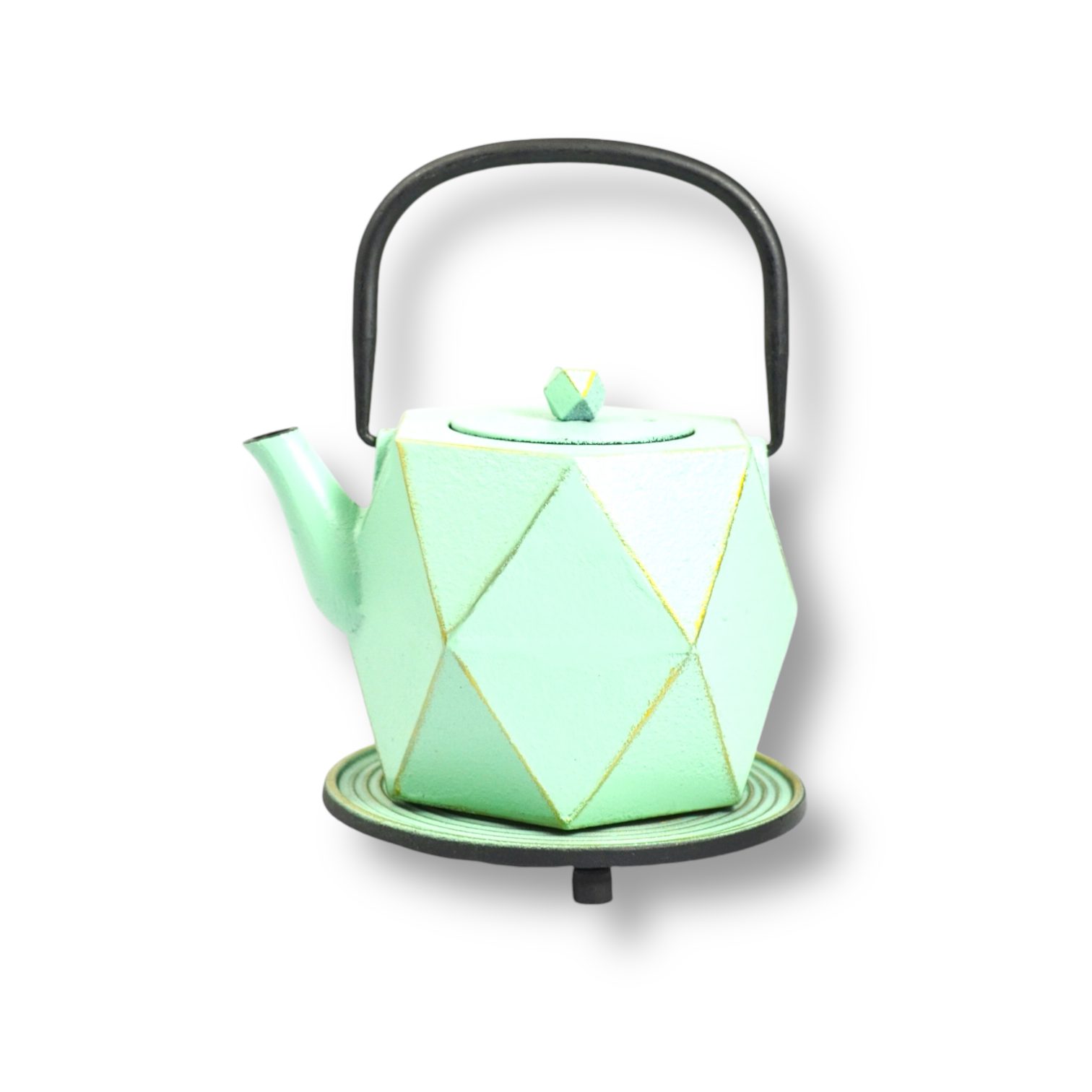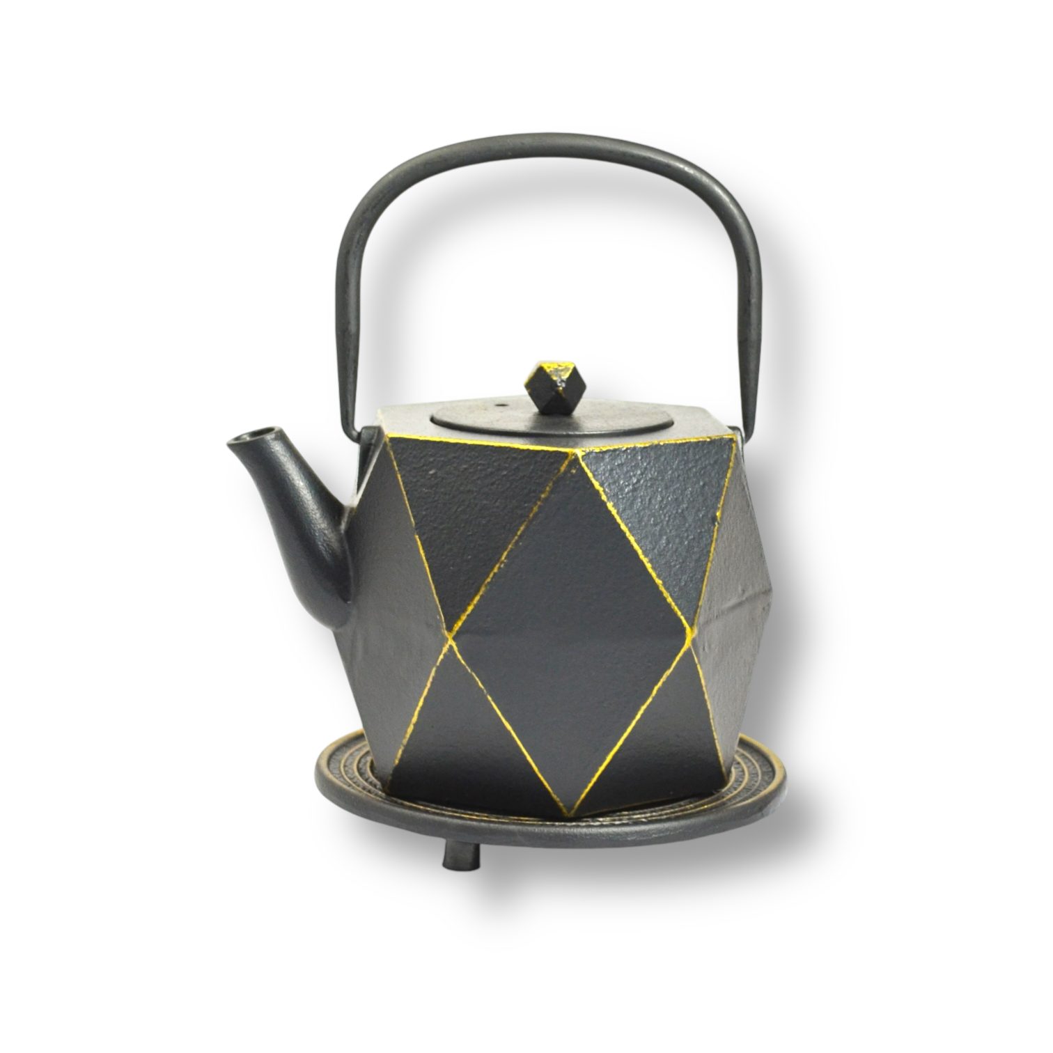 Gusseiserne Produkte der Marke JA-UNENDLICH sind handgefertigte Kunstwerke, hergestellt in dem seltenen Sandgussverfahren nach japanischer Tradition. Mit bis zu 40 aufwendigen Arbeitsschritten ist jedes Produkt ein farbenfrohes Unikat, Farbe und Grösse können geringfügig abweichen. Qualität, Ästhetik und Raffinesse sind drei Schwestern, die unterschiedlicher nicht sein könnten und sich doch perfekt ergänzen. Gemeinsam gehen Sie auf Entdeckungsreise:„Die Mathematiker unter uns freuen sich ! ", sagt Qualität. „Ach wirklich? Aber ich kann das sehr gut nachvollziehen, denn sie ist geradlinig und spiegelt geometrische Muster wieder“, antwortet Ästhetik. „Und gleichzeitig doch so raffiniert mit dem klaren Kanten.“, ergänzt Raffinesse. Die Teekanne aus Gusseisen ist innen durchgehend emailliert und wird mit einem farblich passenden Untersatz aus Gusseisen, sowie einem Edelstahl-Sieb geliefert. Der Untersatz dient zum Schutz einer jeden Tischplatte. Gusseisen zeichnet sich durch seine Fähigkeit aus, Hitze und Kälte länger zu speichern – ein Vorteil warmen Tee länger zu genießen, aber auch um Getränke zu kühlen. Die beigelegte Gebrauchsanleitung verrät wie man sich lange mit der richtigen Anwendung und der materialbedingten Langlebigkeit an diesem einzigartigen und formschönen Produkt erfreuen wird.