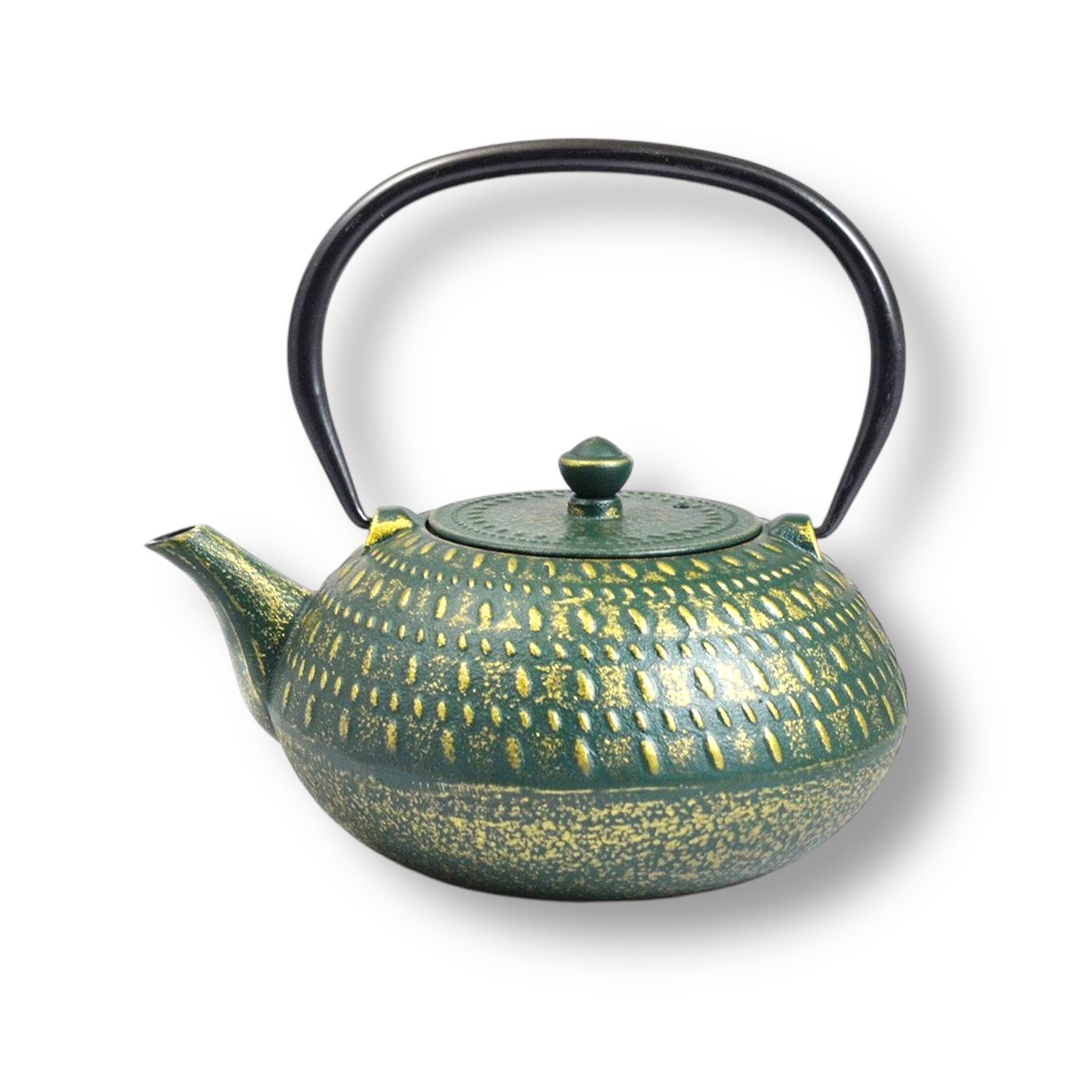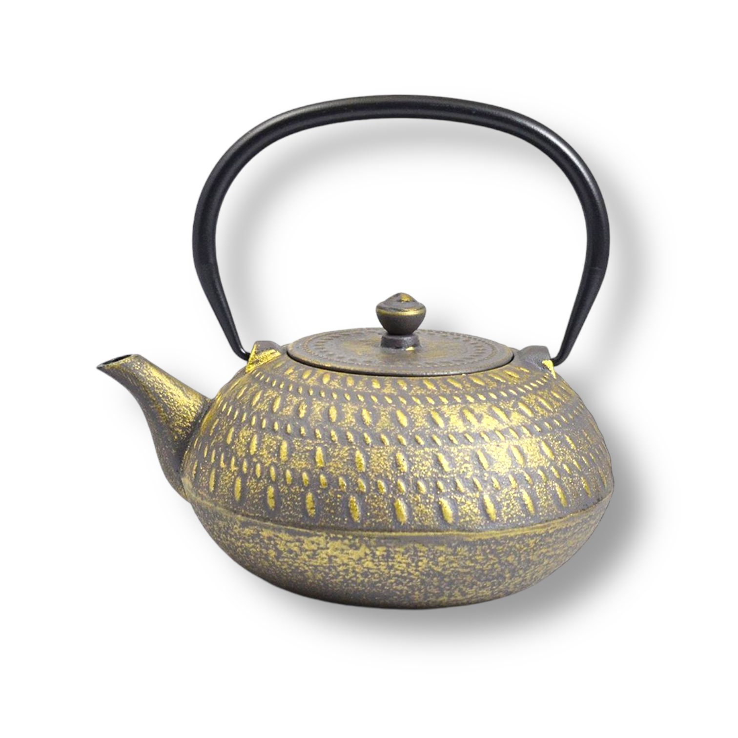 Gusseiserne Produkte der Marke JA-UNENDLICH sind handgefertigte Kunstwerke, hergestellt in dem seltenen Sandgussverfahren nach japanischer Tradition. Mit bis zu 40 aufwendigen Arbeitsschritten ist jedes Produkt ein farbenfrohes Unikat, Farbe und Grösse können geringfügig abweichen. Qualität, Ästhetik und Raffinesse sind drei Schwestern, die unterschiedlicher nicht sein könnten und sich doch perfekt ergänzen. Gemeinsam gehen Sie auf Entdeckungsreise: „Das Modell Stripe bietet eine Füllmenge von 1 Liter und präsentiert sich dank der goldenen Patina im klassischen Vintage-Look.", wahnsinnig schöne Optik sagt Raffinesse. "Für die einzigartige Optik und den edlen Style sorgt dabei ein Dreiklang aus gleich drei verschiedenen, von Hand und mit Schwamm aufgetragenen Farbtönen.", fügt Qualität hinzu. Die Teekanne aus Gusseisen ist innen durchgehend emailliert und wird mit einem Edelstahl-Sieb geliefert. Gusseisen zeichnet sich durch seine Fähigkeit aus, Hitze und Kälte länger zu speichern – ein Vorteil warmen Tee länger zu genießen, aber auch um Getränke zu kühlen. Die beigelegte Gebrauchsanleitung verrät wie man sich lange mit der richtigen Anwendung und der materialbedingten Langlebigkeit an diesem einzigartigen und formschönen Produkt erfreuen wird.